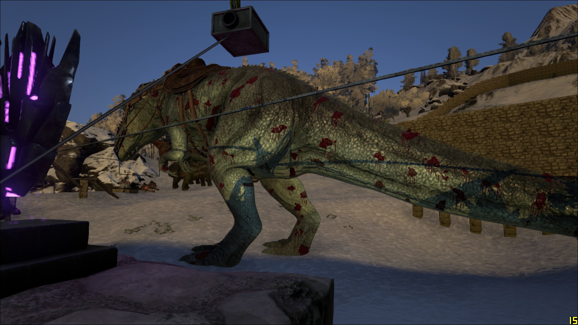 Kurzum, die Sache mit dem töten funktioniert mit einem Vogel der gut auf Stamina gelevelt ist und einem auf Melee Damage gelevelten Fleischfresser (je höher umso besser, z.B. Rex oder Giganoto).
