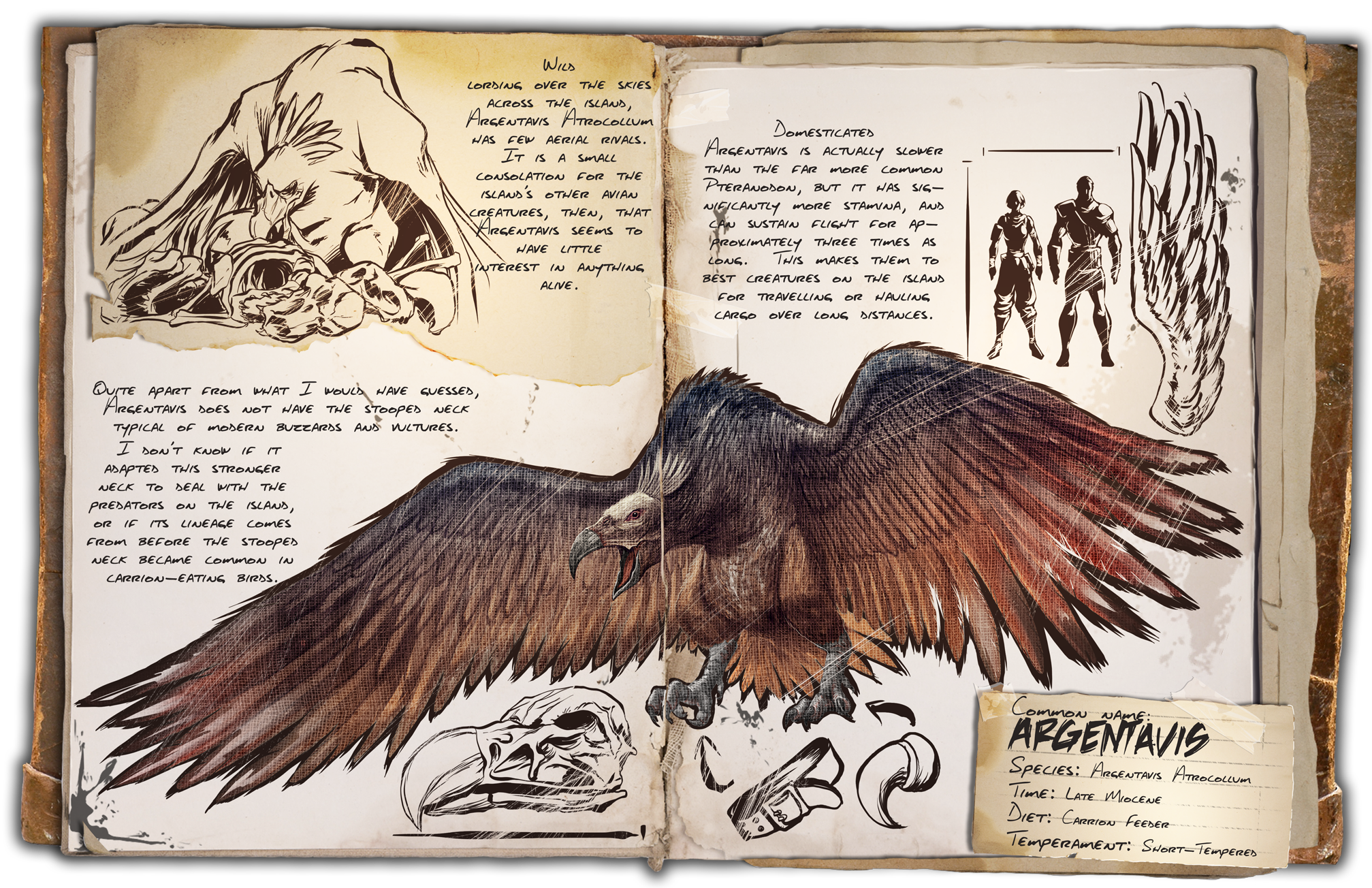 Argentavis Fleischfresser Aggressiv Greift den Spieler an! Vorteil: Perfektes Flugtier für Transport, Angriff, Zähmung und Verteidigung. Zucht: Ja Optimale Eiertemperatur bei der Bebrütung: 12°C - 13,5°C |