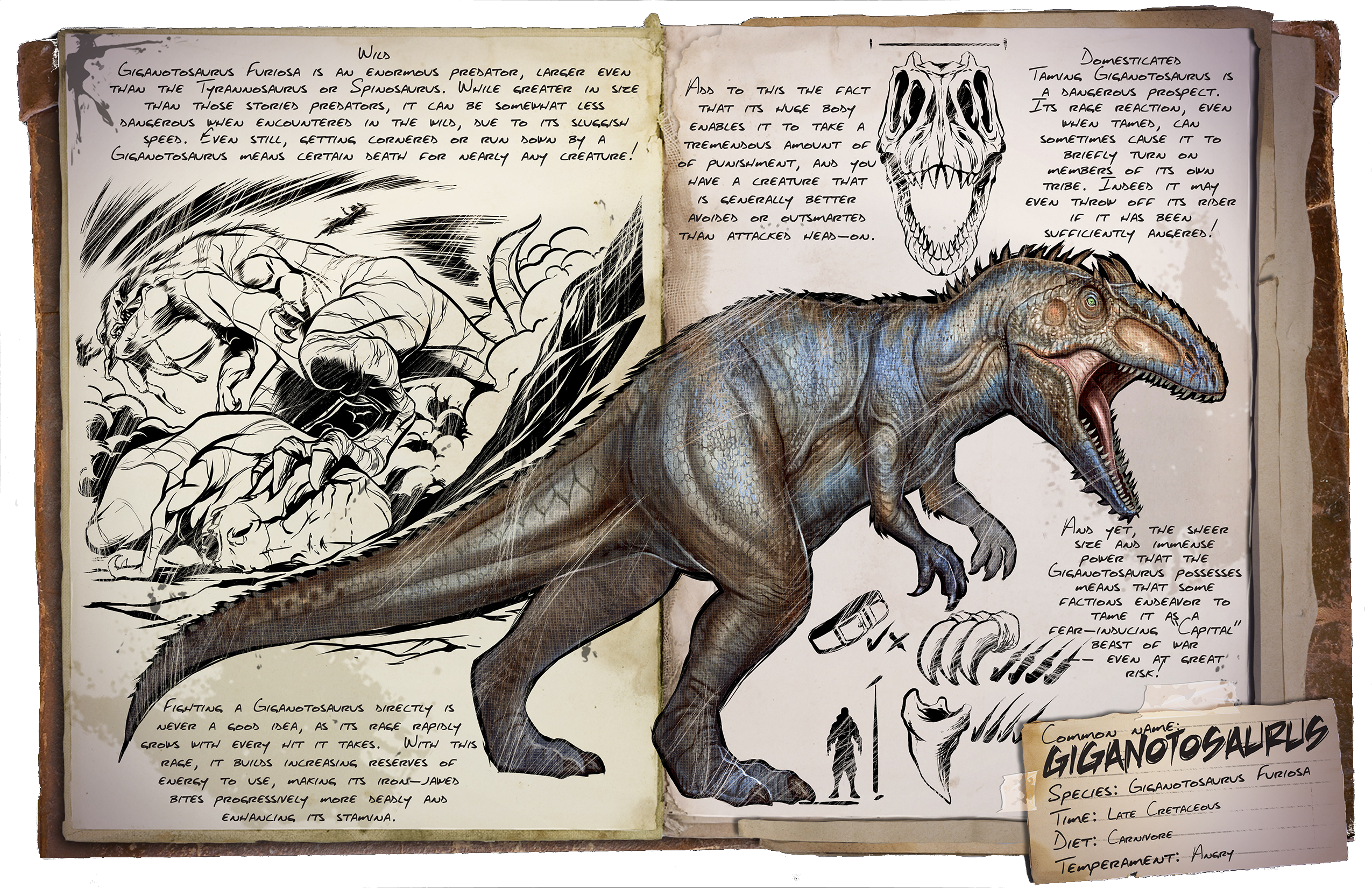 Baryonyx Fleischfresser Aggressiv Greift den Spieler an! Vorteil: Kann schwimmend Tiere und Spieler betäuben. Zucht: ja Optimale Eiertemperatur bei der Bebrütung: 29°C - 35°C Unterstützt beritten die Nutzung von Waffen. |