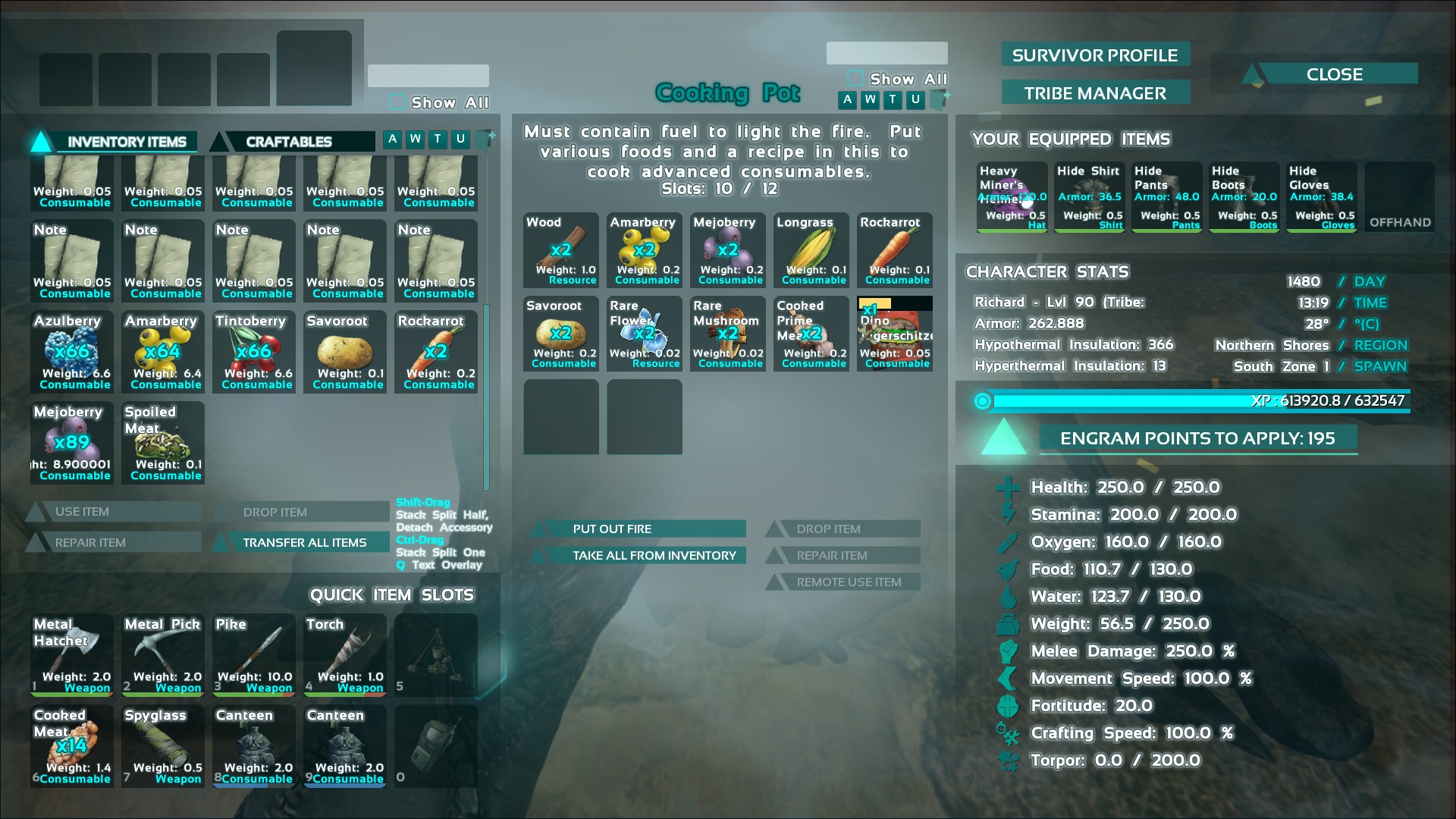 | Unser zubereitetes Dino - Schnitzel hat eine längere Verfallzeit als andere Nahrungsmittel in ARK und eignet sich als nahrhafter Proviant für längere Ausflüge. Ebenso lassen sich zubereitete Mahlzeiten in einem Kühlschrank ablegen, dieser verlängert die Haltbarkeit extrem. |