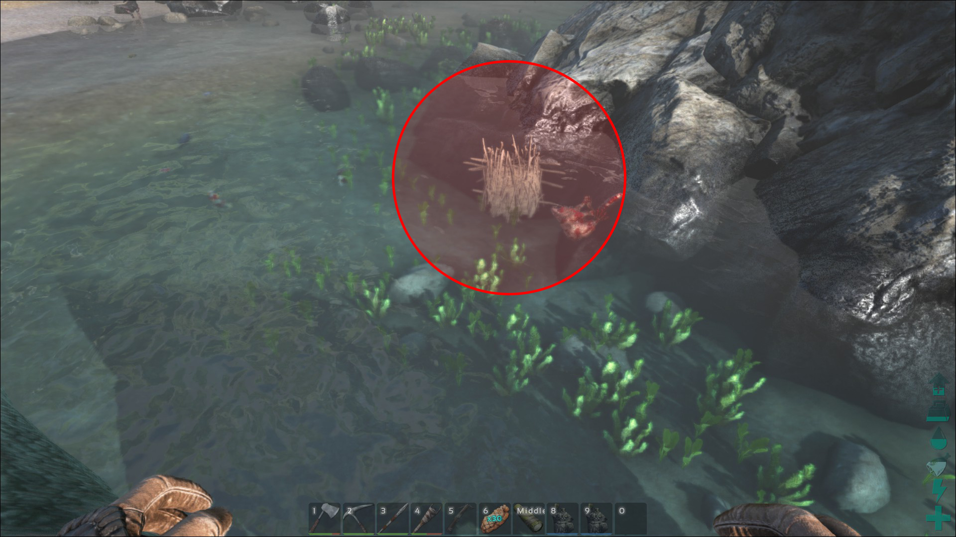 Der Damm des Biber`s vom Rücken eines Giganoto aus betrachtet.