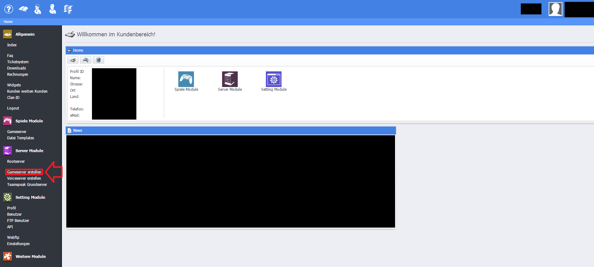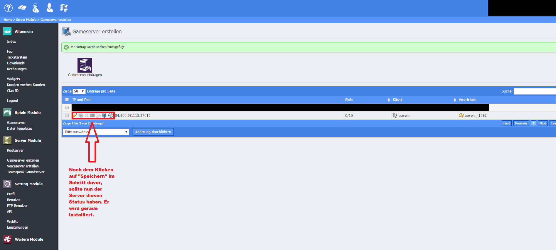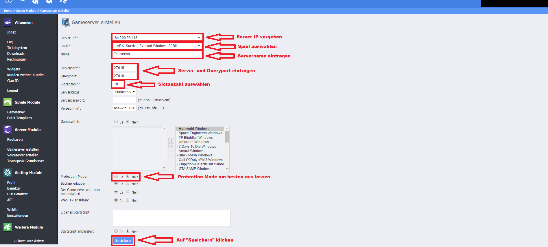 Schritt 12: Klickt nun auf "Gameserver"