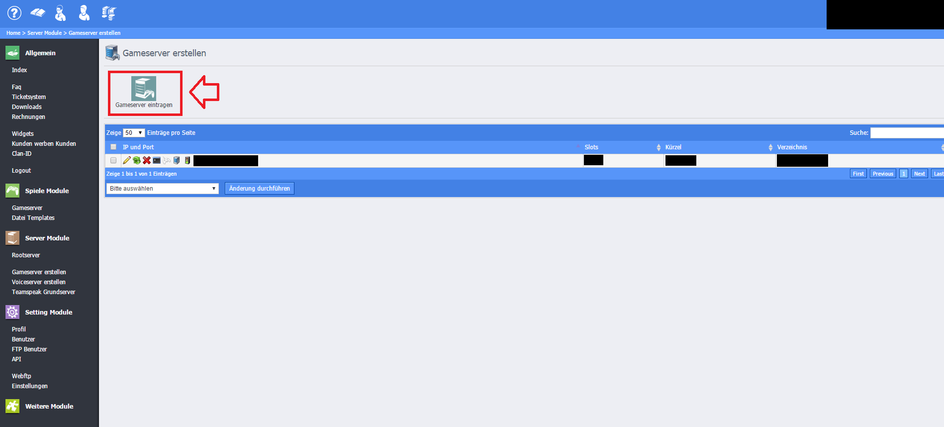 Schritt 2: Auf "Gameserver eintragen" klicken