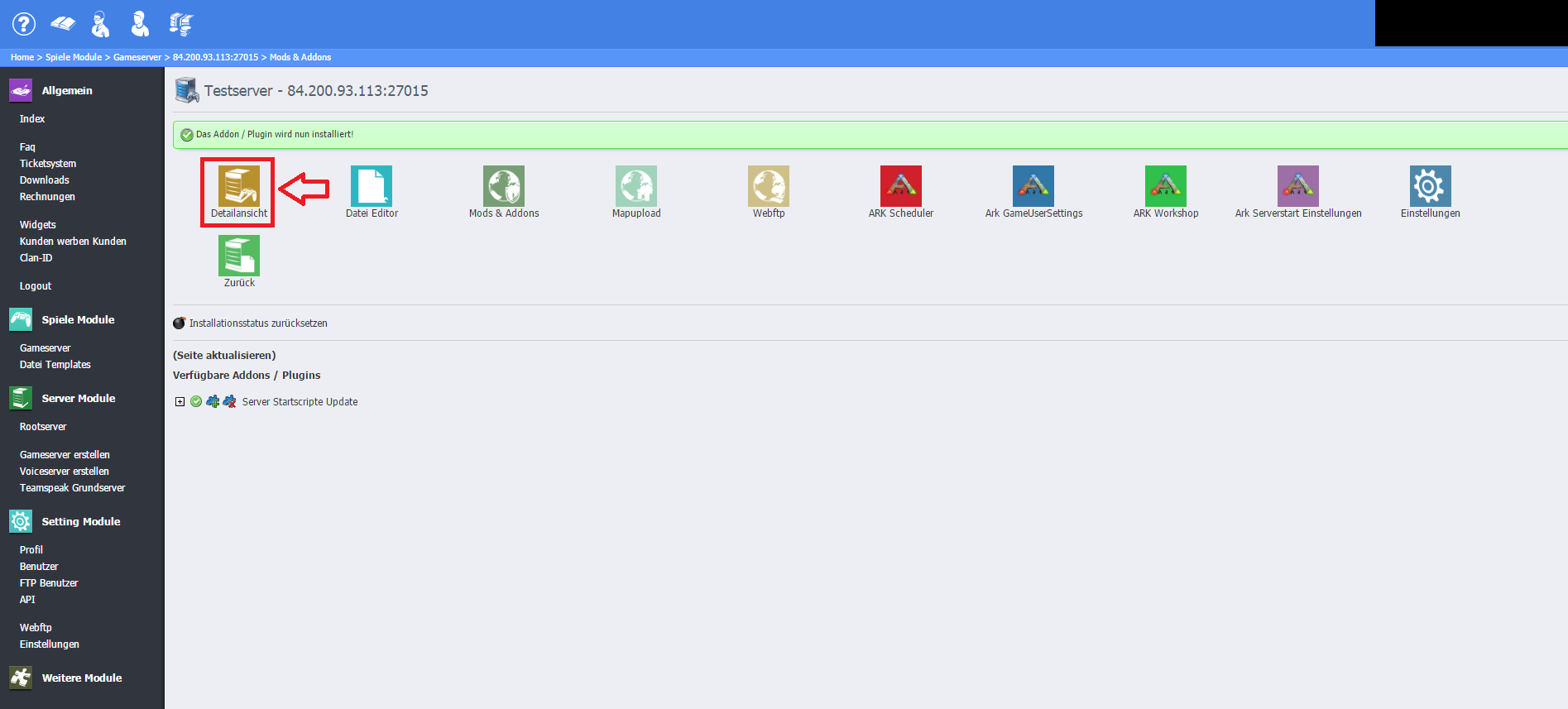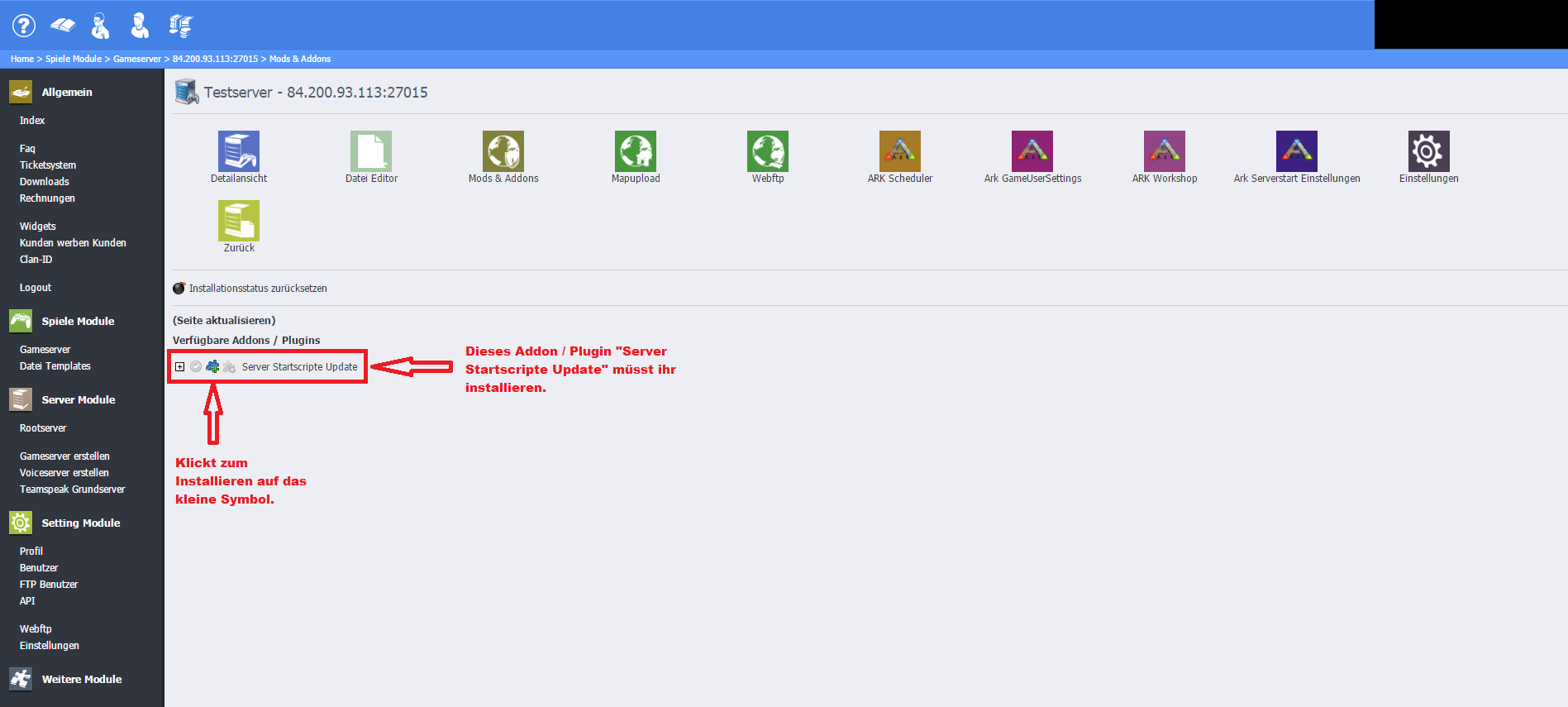 Schritt 7: Das Addon / Plugin "Server Startscripte Update" installieren