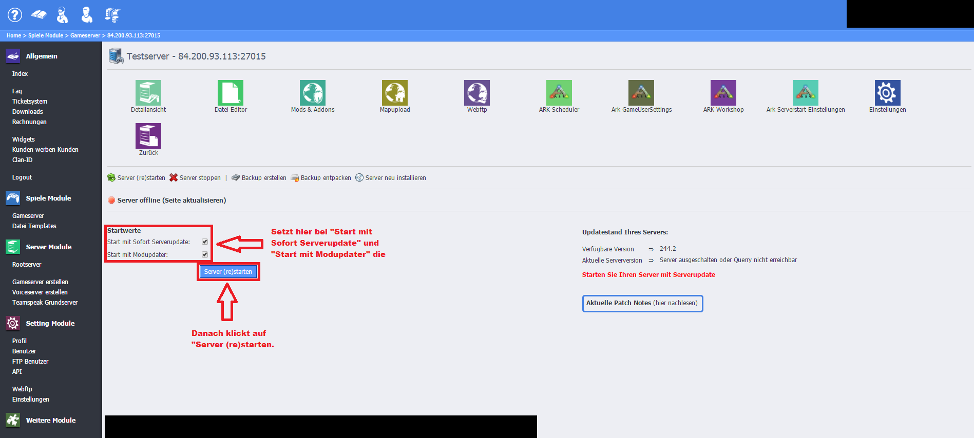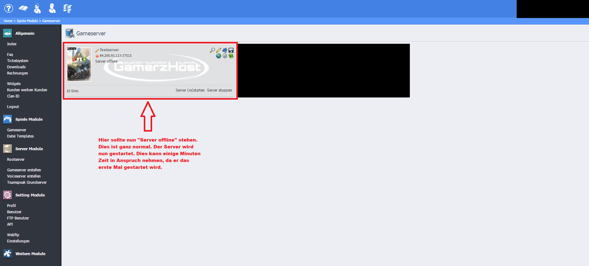 Voraussetzungen dafür sind, dass ihr den Rootserver a) bei Gamerzhost und b) mit Webinterface habt.