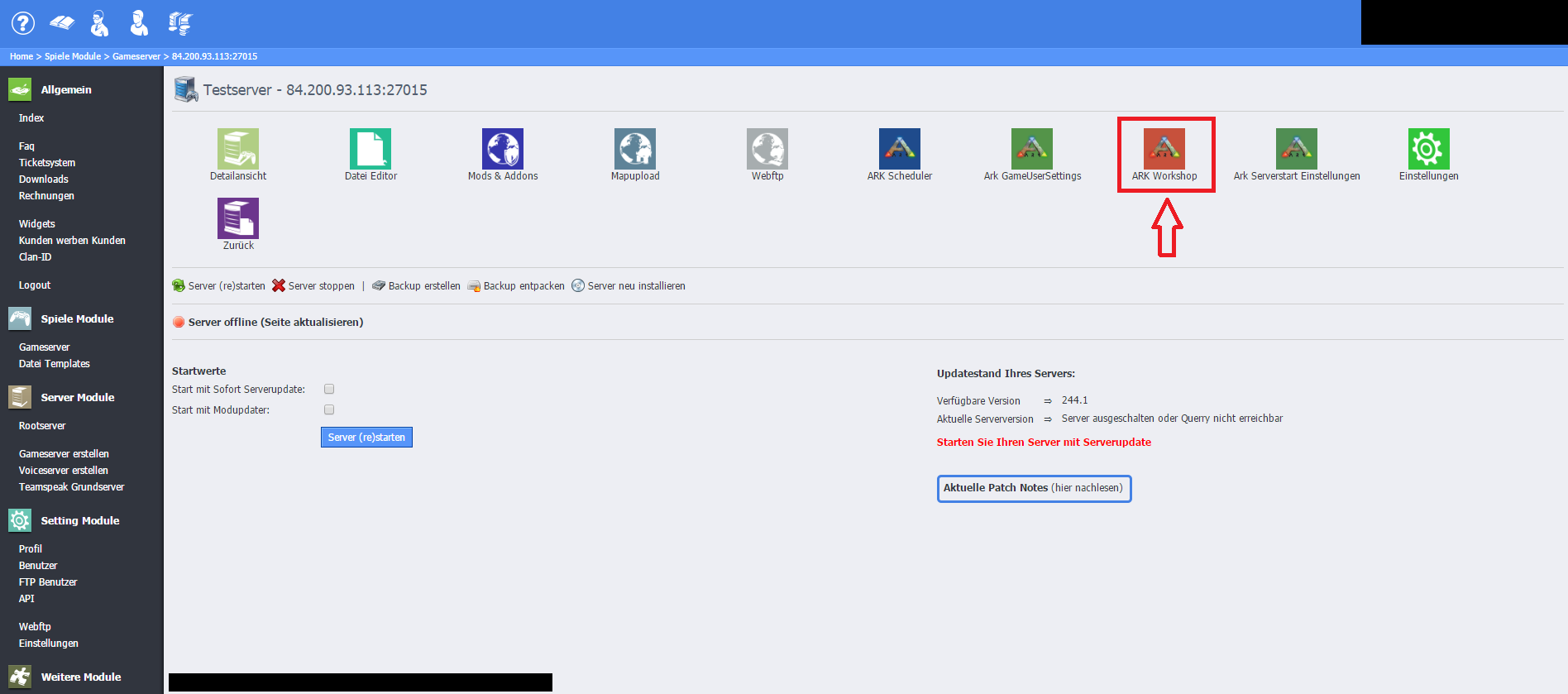Schritt 9: Anschließend klickt ihr auf "Ark Serverstart Einstellungen"