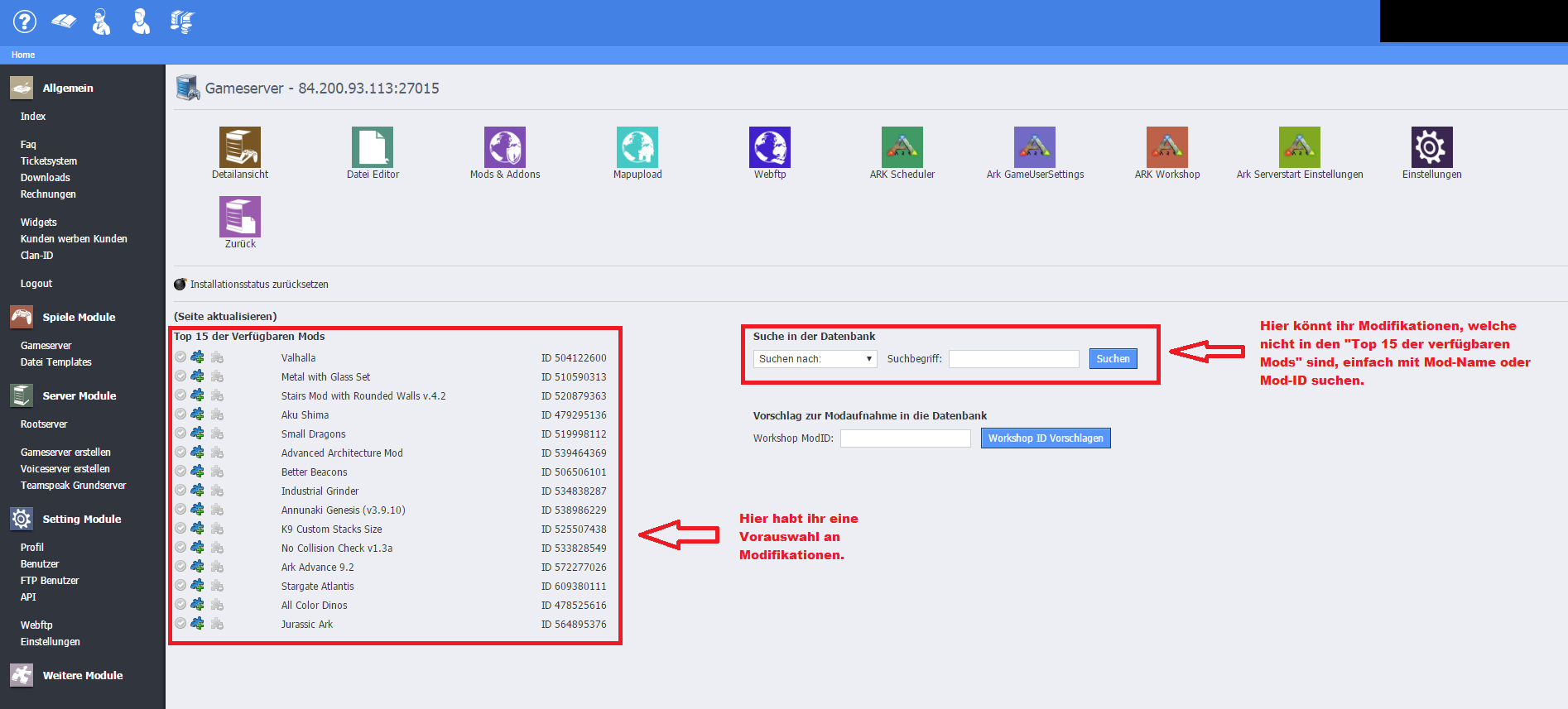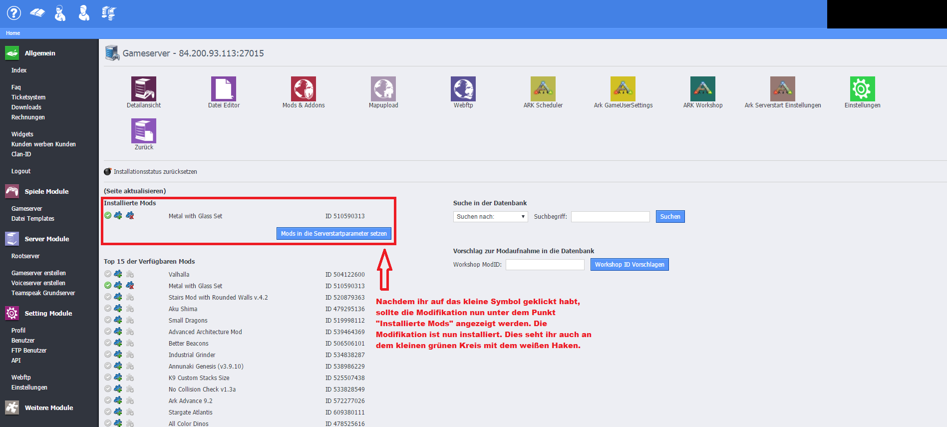 hier eine einfache Anleitung wie ihr Modifikationen (Mods) auf eurem Gameserver einfügen könnt.