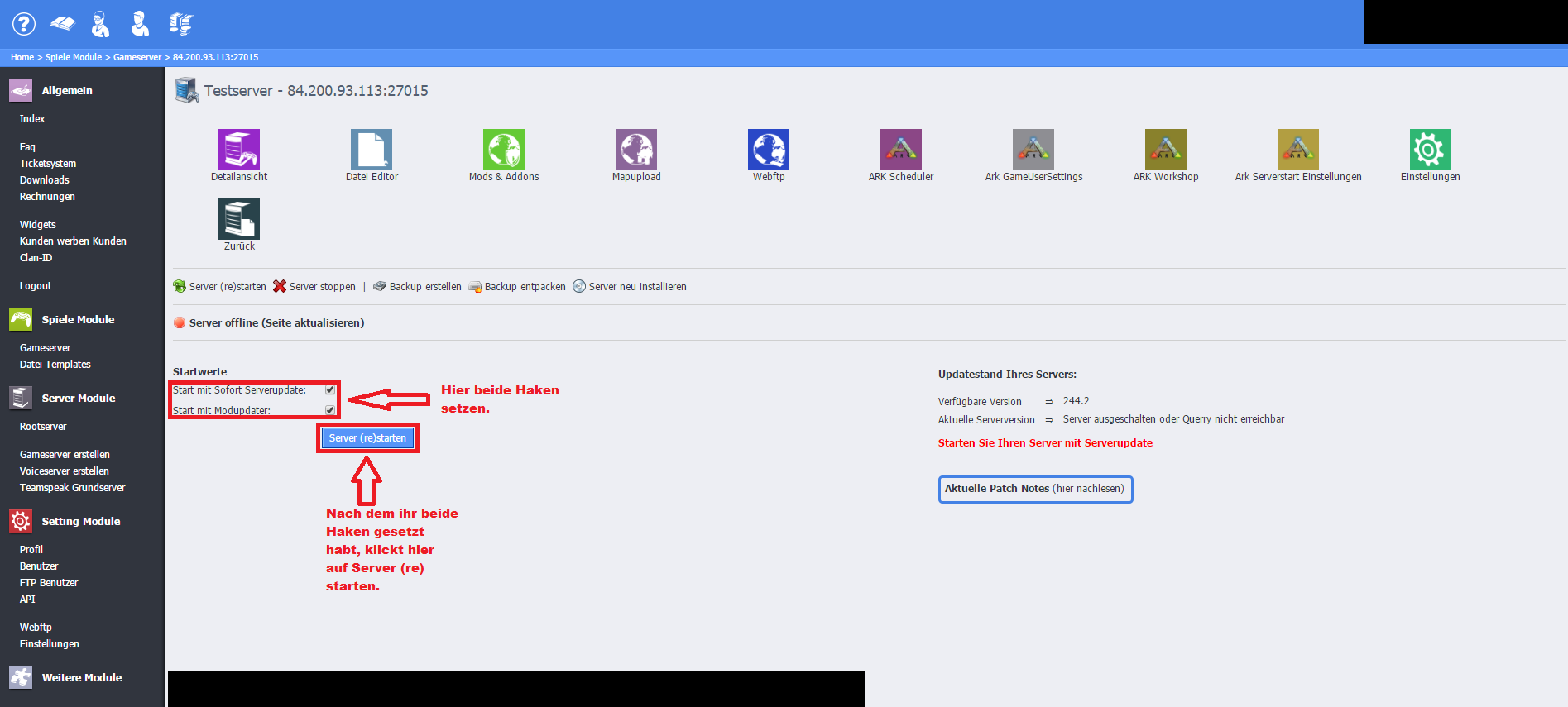 Voraussetzungen dafür sind, dass ihr den Rootserver / Gameserver a) bei Gamerzhost und b) mit Webinterface habt.