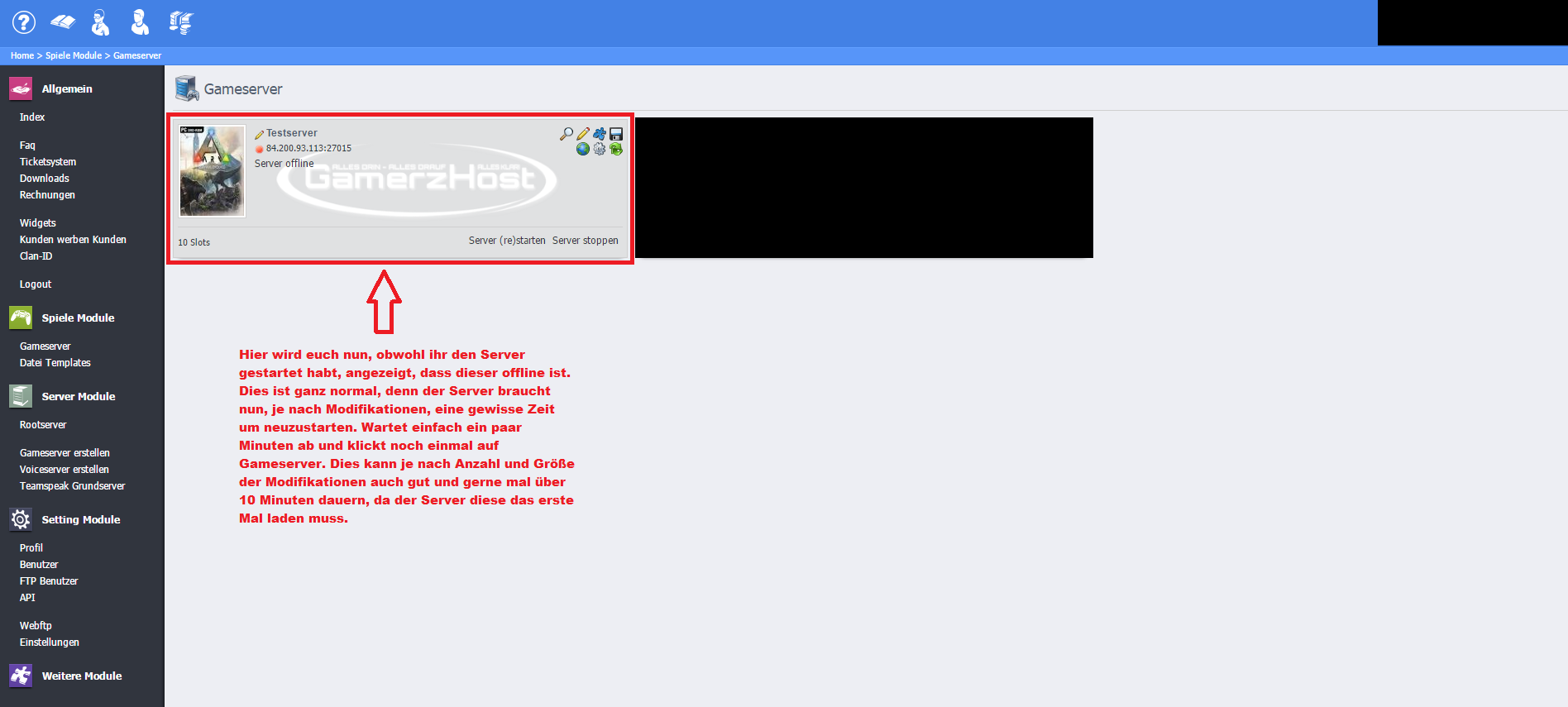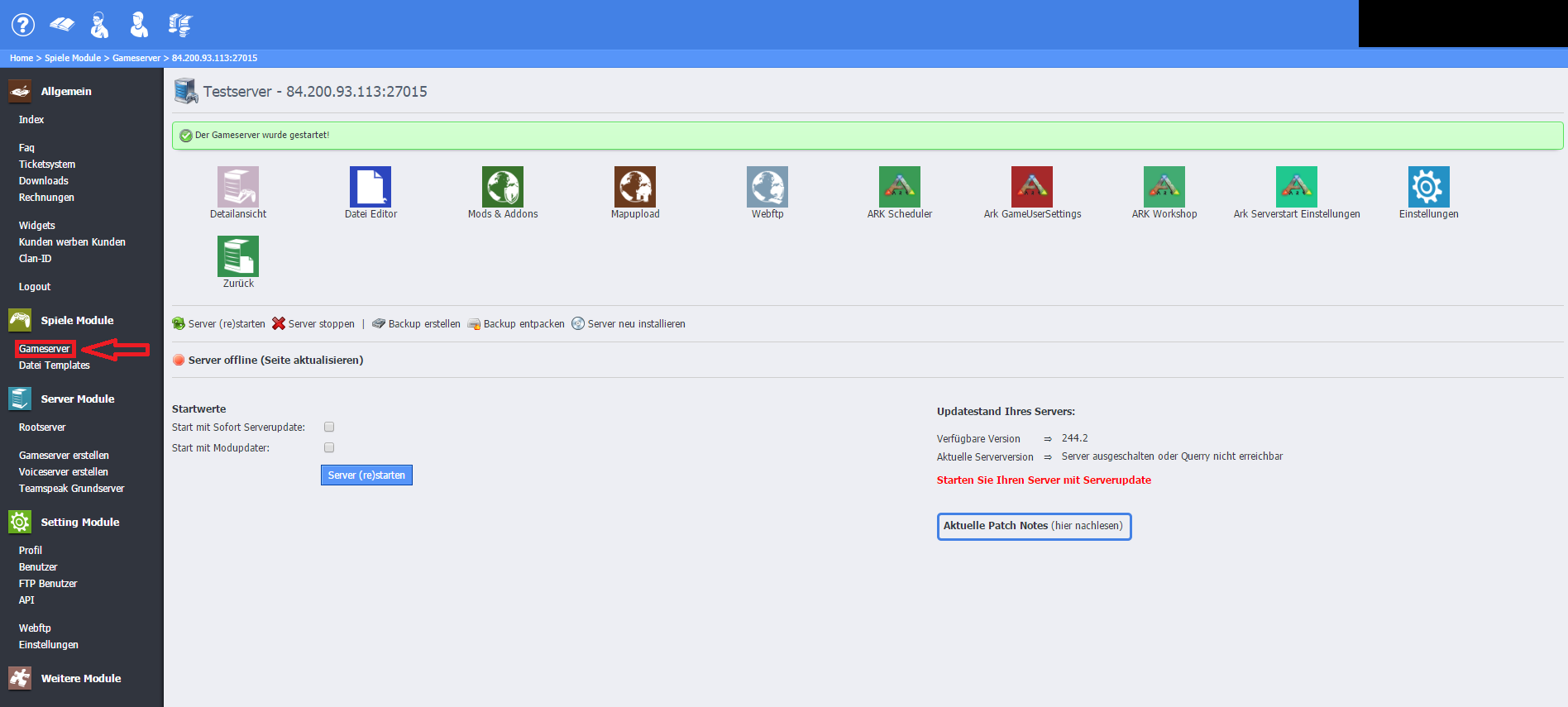 Schritt 15: Der Gameserver wurde gestartet