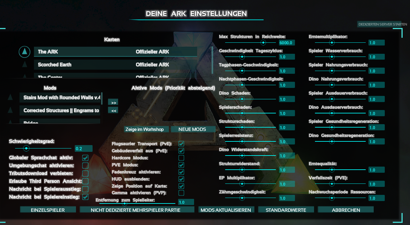 Welche Einstellungen wurden bei ARK gewählt? siehe Anhang