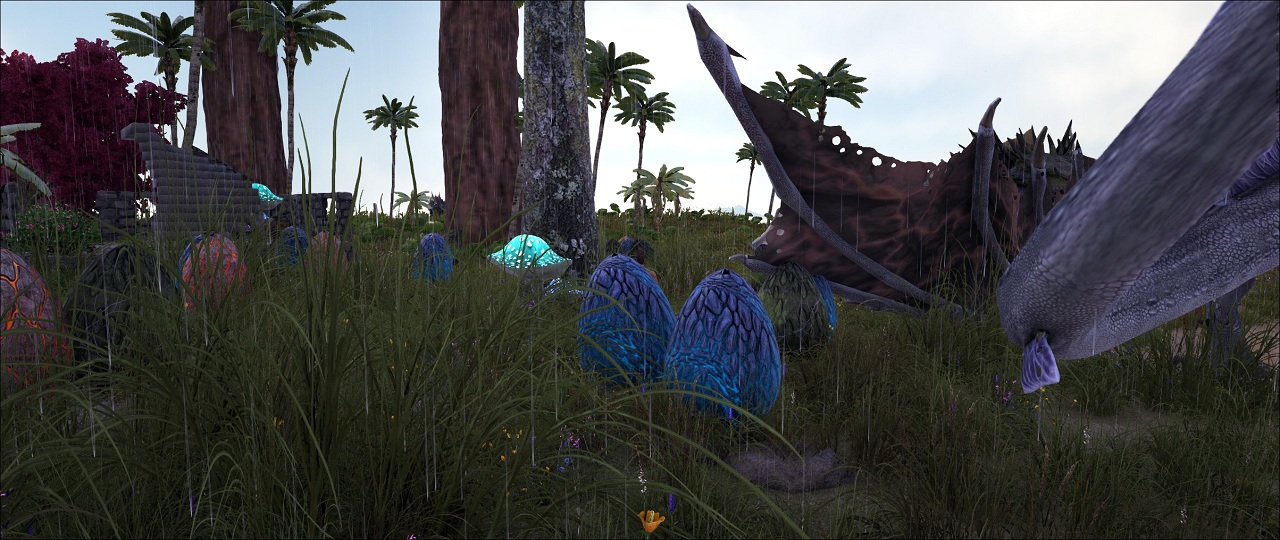• Seit Generationen erzählt man sich die Legende vom Sterbeplatz der Wyvern. Wonach diese wundervollen wenn auch extrem gefährlichen Tiere, sich an einen geheimen Platz zurückziehen um zu sterben. Vor dem sterben legen sie der Legende nach aber immer noch einmal ein Ei. Bis vor kurzem gab es anscheinend keinen Überlebenden der diesen Platz je gefunden und betreten hat. Wie gesagt, bis vor kurzem. Denn im Nachlass des vor kürzlich verstorbenen Forschers und Abenteurers „Indiana James“ wurden die nachfolgenden wirklich sensationellen Aufnahmen gefunden die offensichtlich diesen Platz zeigen. Wie man darauf erkennen kann befinden sich nicht nur jede Menge dieser Eier an diesem Platz sondern auch verschiedene Wyvern. Ob diese Tiere da sind um zu sterben oder um die Eier zu betreuen weiß man nicht. Es ist auch nicht ersichtlich ob sie bösartig sind oder sich vielleicht sogar zähmen lassen. Auch ist auf den Aufnahmen leider nicht auszumachen wo auf „The Center“ sich dieser legendäre Platz befindet. Die Ruinen lassen aber den Schluss zu das hier irgendwann Leute gesiedelt haben. Die schriftlichen Unterlagen dazu sind leider in der für ihn typischen Geheimschrift verfasst und konnten bis jetzt nicht entziffert werden. Aber ich bin der festen Überzeugung dass es für jeden richtigen Abenteurer sicherlich lohnend ist nach diesem Ort zu suchen.