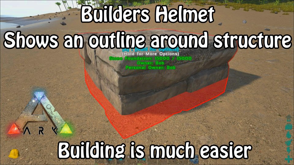 Mich hatte am Bausystem seit Anfang an an ARK gestört, dass man nicht immer wusste, welche Struktur man gerade angewählt hat. Dadurch ist mir schon so einiges an Gebäuden zusammengebrochen. Und von anderen Bau-Spielen kennt man ja, dass der angwählte Gegenstand mit einem farbigen Rand markiert wird. Und für ARK kommt da jetzt mein Helm ins Spiel.
