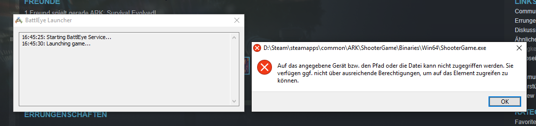 [*]Wie startet ihr Ark? (bei Steam gibt es 3 verschiedene Startmöglichkeiten) normal mit battleye aufn server