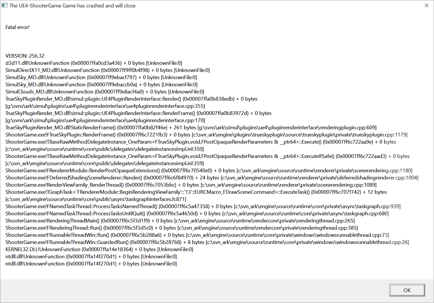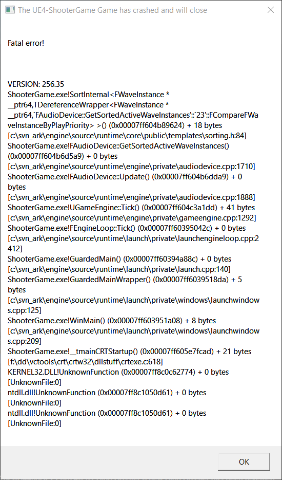 Mein Ark (Egal ob, Online oder Singleplayer. Ich benutze keine Mods.)schließt sich immer nach 10-20MIn mit dem Fehler "Fatal Error". Ich hab schon alles mögliche versucht und finde einfach keine Lösung im Netz. Kann mir irgend einer helfen, bitte.