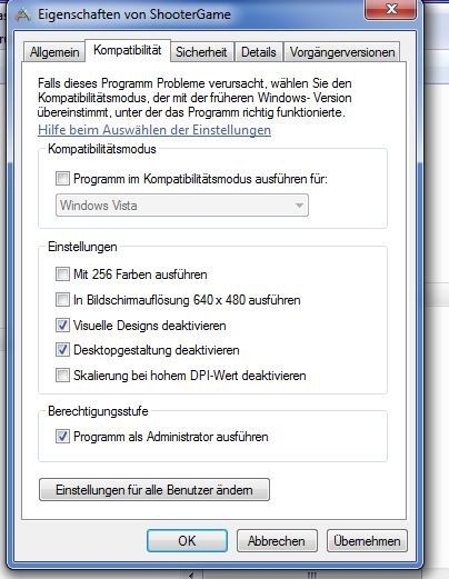 Oder versucht die exe. mal so einzustellen