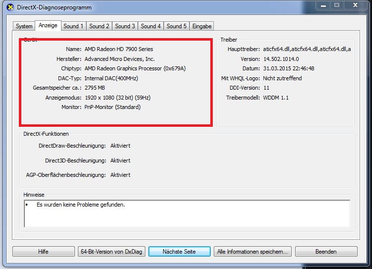entweder püber Dxdiag (Sound nach schauen )