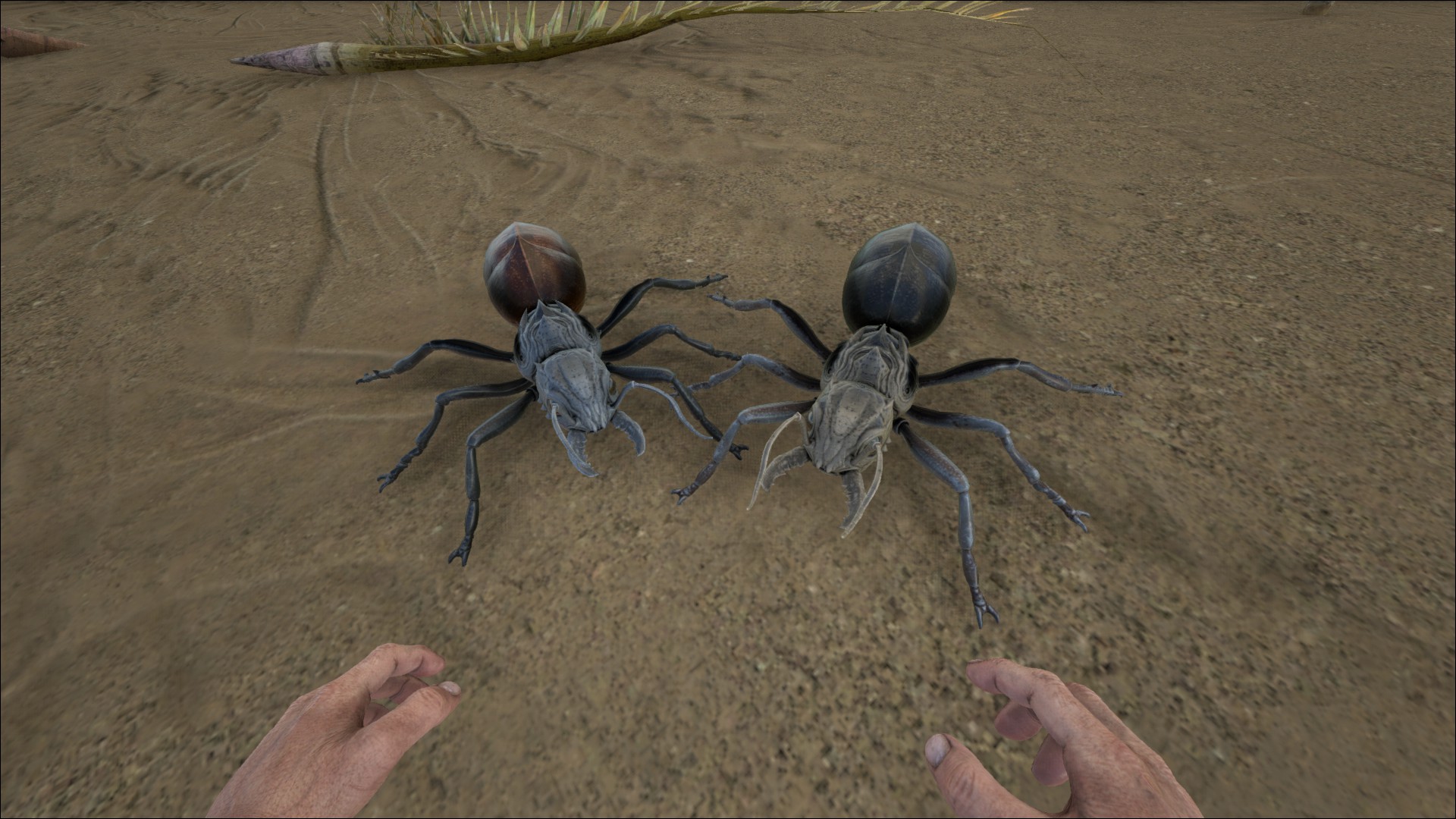 Wegen ihrem Bienenstock ähnlichem Verhalten, konnte ich noch keine erfolgreich gezähmte Titanomyrma auf der Insel sehen. Zum Glück für den Überlebenden lässt sie sich leicht töten und gibt beim Abernten, neben anderen Ressourcen, eine kleine Menge Chitin. -