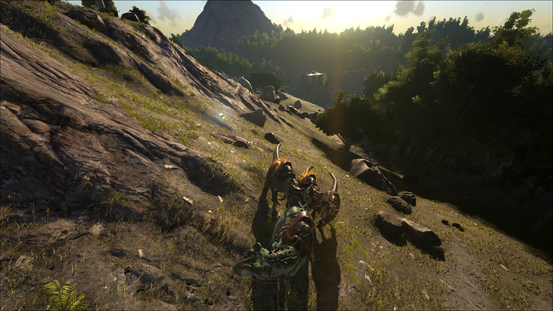 Versucht einen hohen Felsen / Anhöhe zu erklimmen und betäubt ihn von dort aus, so das er Euch während des betäubens nicht erreichen kann. Er wird allerdings auch die Flucht ergreifen und nach einem neuen Allosaurus - Rudel ausschau halten, welchen er sich anschließen wird. Von daher ist es sinnvoll das betäuben gleich von der Sattelplattform eines Quetzals aus zu erledigen. Solltet Ihr zu weit spielen, gibt es die Möglichkeit den Argentavis zu nutzen, wobei ein Spieler in den Krallen des Vogels hängt und schießt, während der andere den Argentavis steuert.