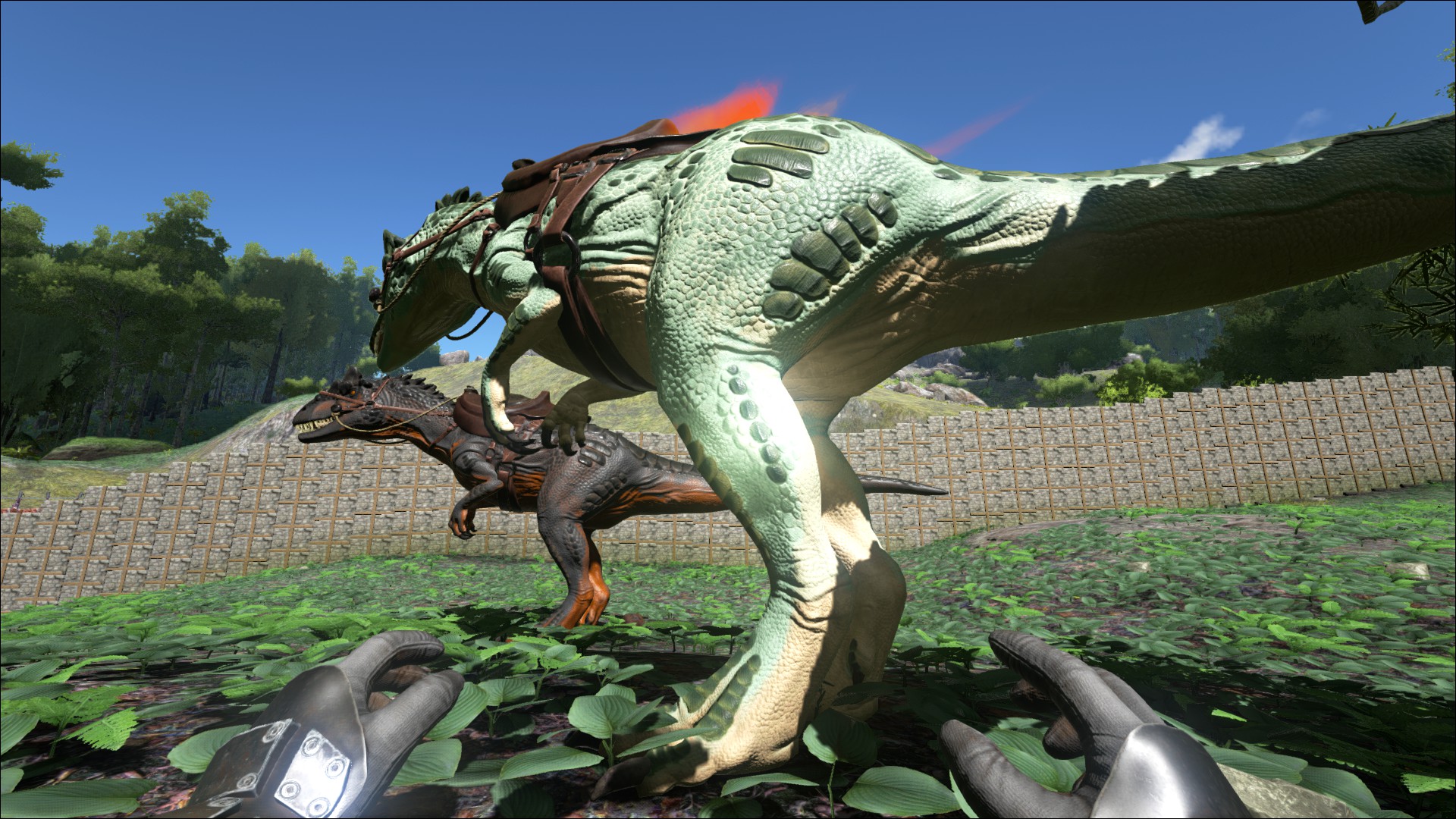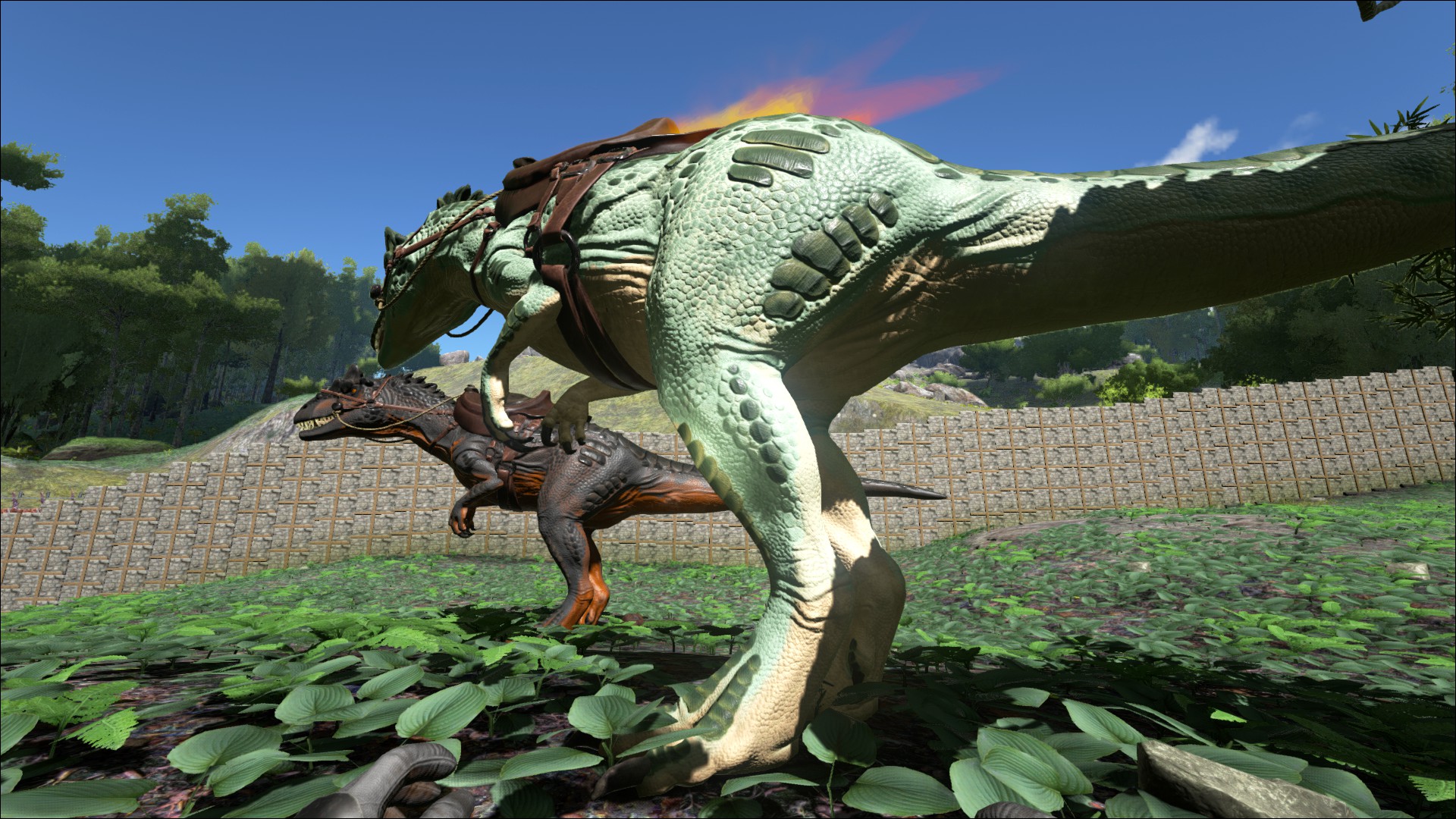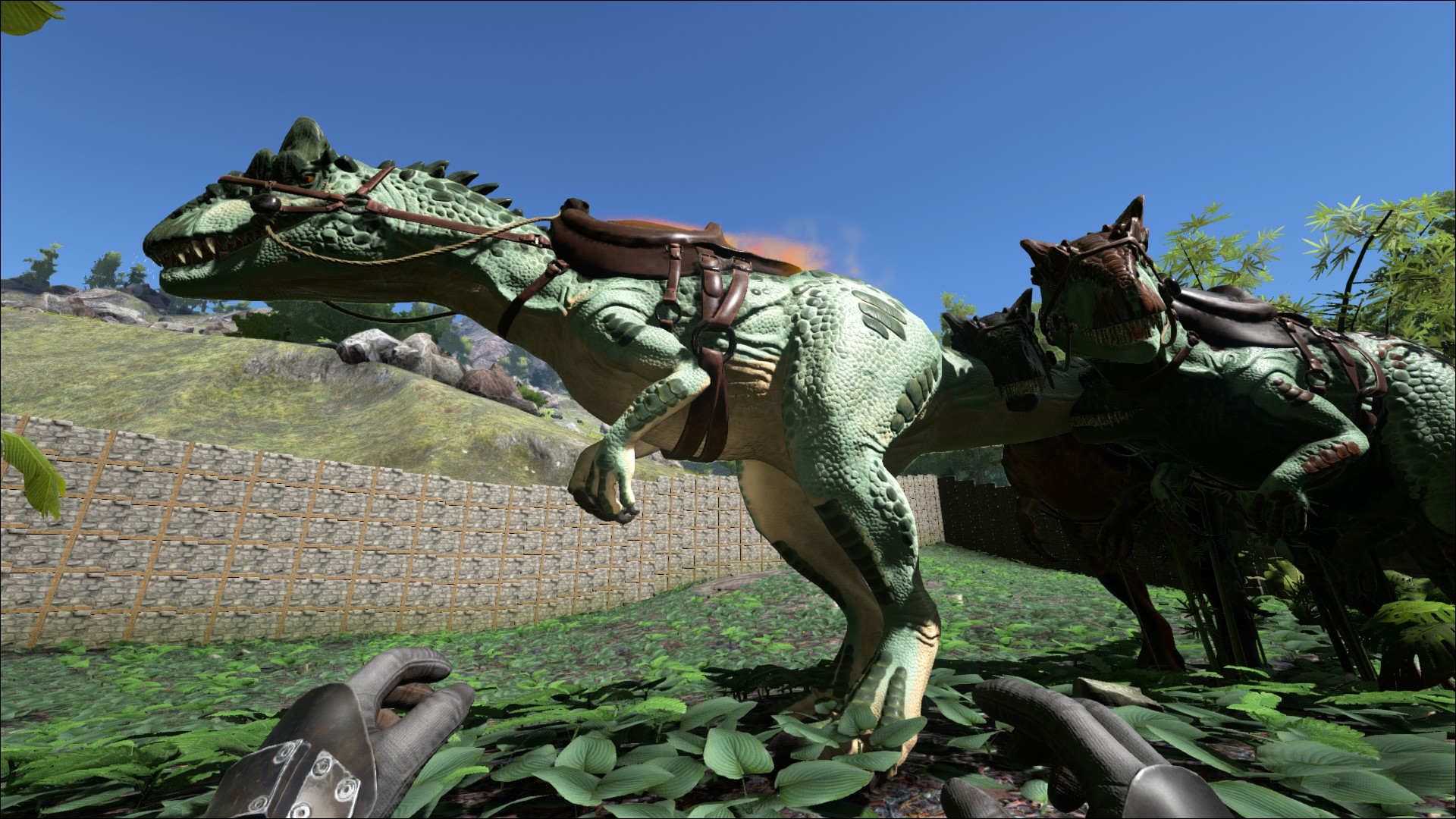- Gezähmt: Nicht jeder denkt, dass ein gezähmter allosaurus ideal zur Jagt geeignet ist. Personen, die auf Geschwindigkeit setzen zähmen einen Carnotaurus, während Personen mit dem Wunsch nach purer Kraft den Tyrannosaurus bevorzugen. Trotz allem können Reiter eines Allosaurus die Vorzüge des Reitens eines Alpha Tieres leicht erkennen. Ein Rudel blutrünstiger Kreaturen mit relativ großer Mobilität können einen Kampf schnell wenden