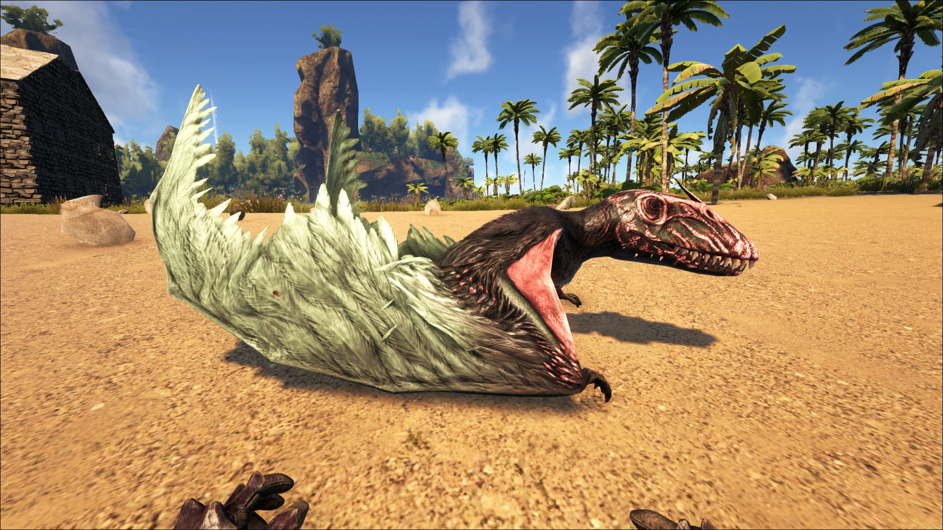 Sobald Euer Dimorphodon betäubt ist, muß alles recht zügig gehen, denn das Tier baut die Betäubung relativ schnell ab.