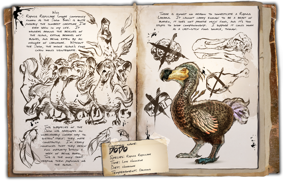 - Wild: Raphus replicare (bekannter unter Dodo Vogel) ist womöglich die dümmste Kreatur, die ich bisher in meinem Leben gesehen habe. Er wandert auf den Stränden der Insel umher, isst Beeren von Büschen und wird von allen möglichen Fleischfressern gegessen. Ohne den Dodo würde die ganze Nahrungskette der Insel zusammenbrechen.