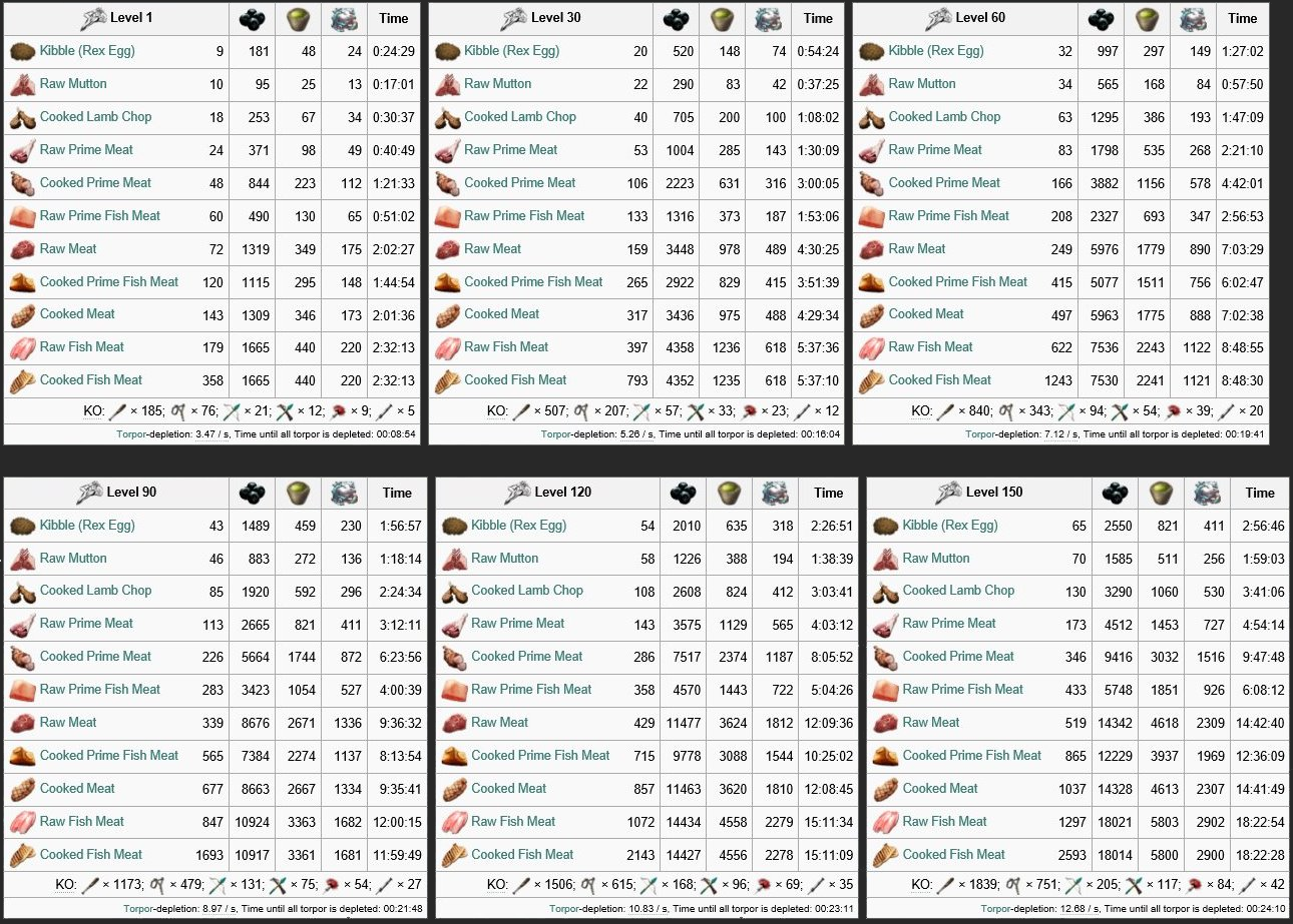 | Attribut | Menge auf Stufe 1 | Zuwachs pro Level (Wild) | Zuwachs pro Level (Gezähmt) | Taiming Bonus |