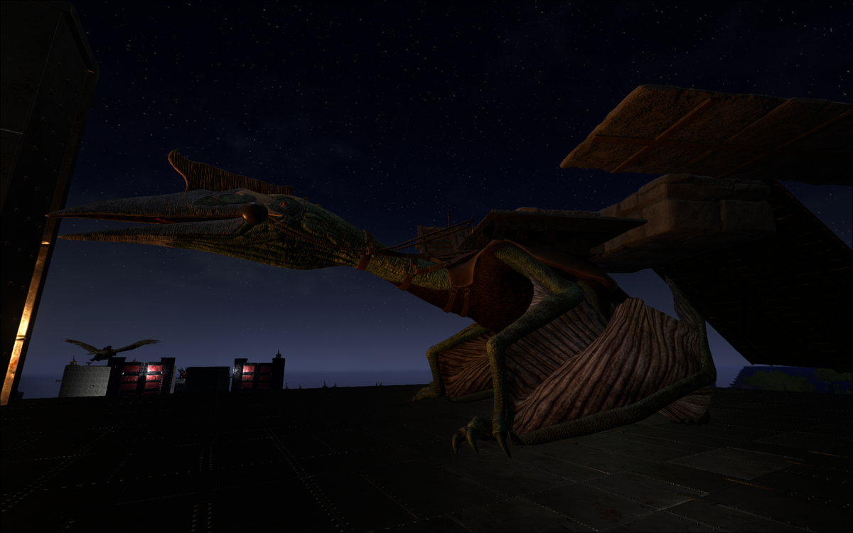 Gezähmte Quetzalcoatlus haben eine sehr spezielle Aufgabe auf der Insel. Sie sind zu langsam um als effizientes Transportmittel zu dienen und zu schwach als effektiver Kampfvogel. Die von mir angetroffenen Tribes haben ihn oft als Massentransporter eingesetzt. Quetzalcoatlus wird in erster Linie von diesen Meistern der Lüfte benutzt, um sicher große Mengen an Versorgungsgütern, Kreaturen und Personen von einer Basis zur nächsten zu bringen, ohne zu ermüden. -