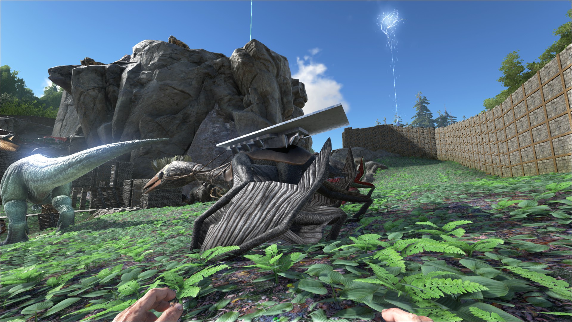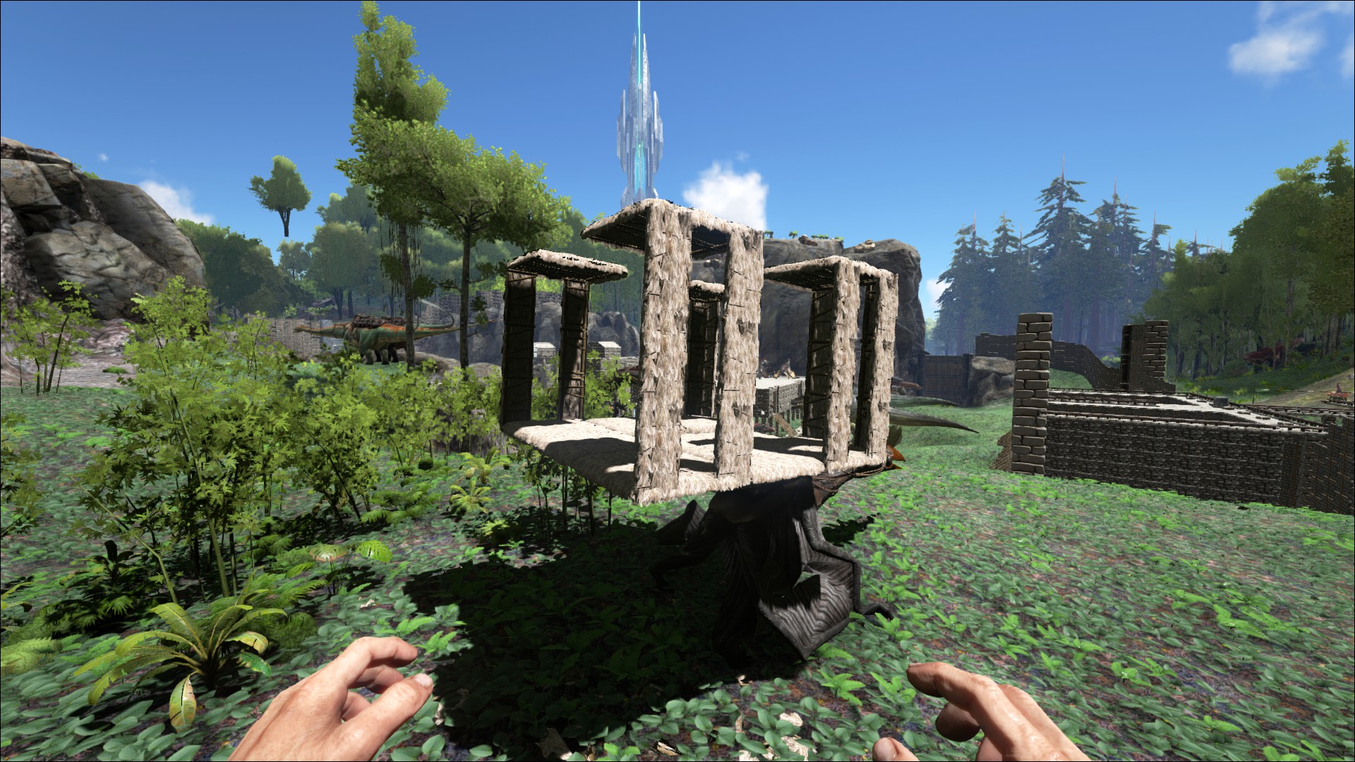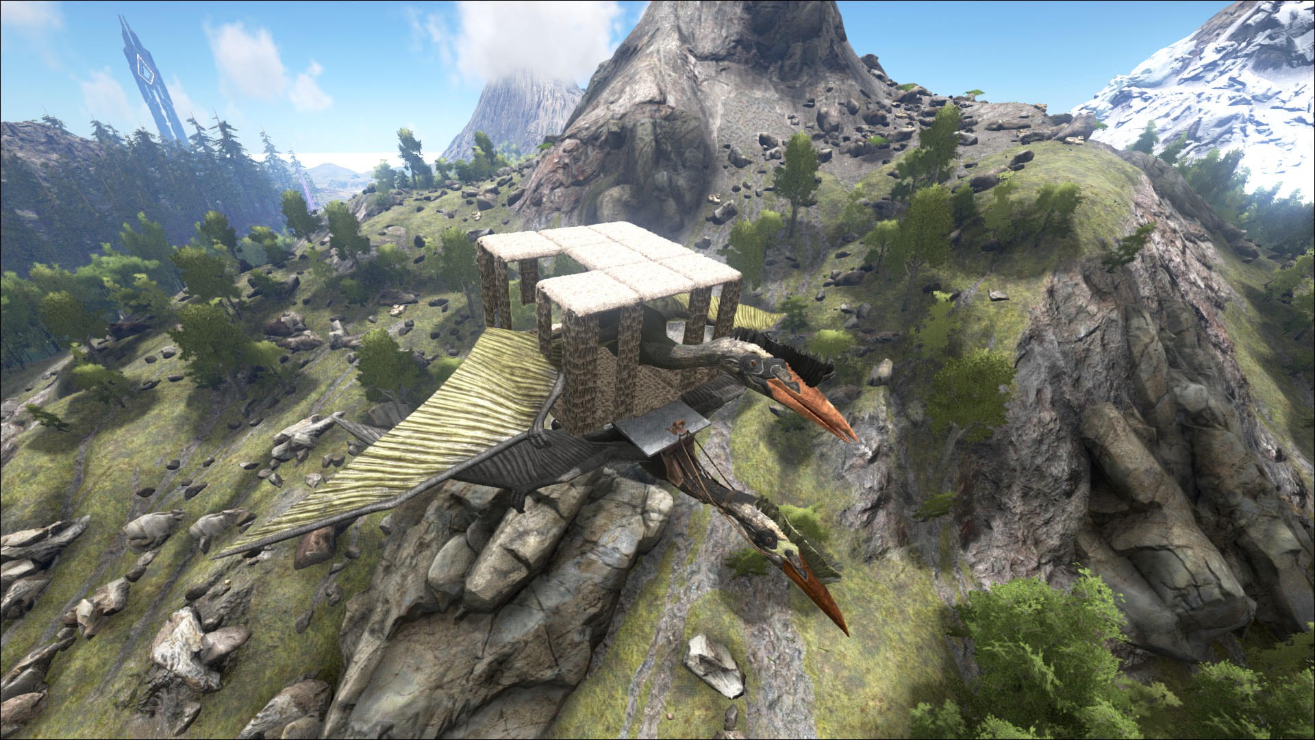- Kann eine Sattelplattform tragen und auf dieser Dinos transportieren