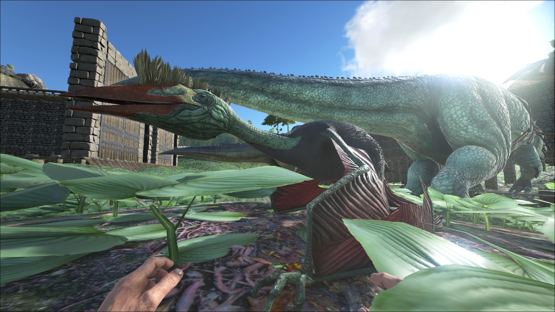 **(Sollte der Quetzal ins tiefe Wasser fallen, Pech... fällt der Quetzal in der Nähe zu Fleischfressern zu Boden, versucht alle Fleischfresser sofort zu töten, schafft Ihr das nicht, Pech...) Wenn Ihr diese Hürden erfolgreich gemeistert habt, gebt ihm sofort Narkotikum und zäunt den Quetzal mit Hölzernen Stachelwänden ein. Jetzt könnt Ihr mit dem langwierigen füttern beginnen.