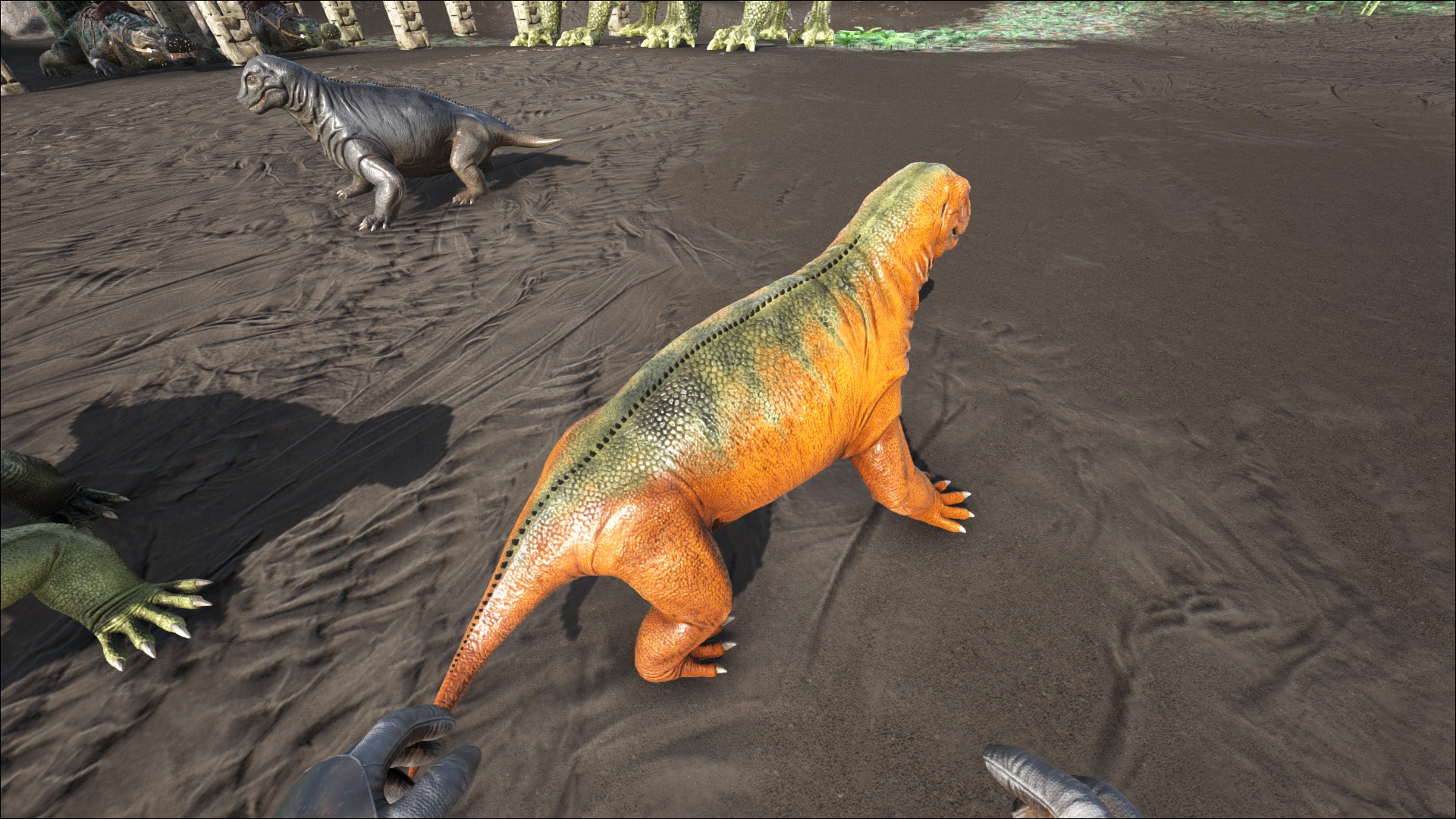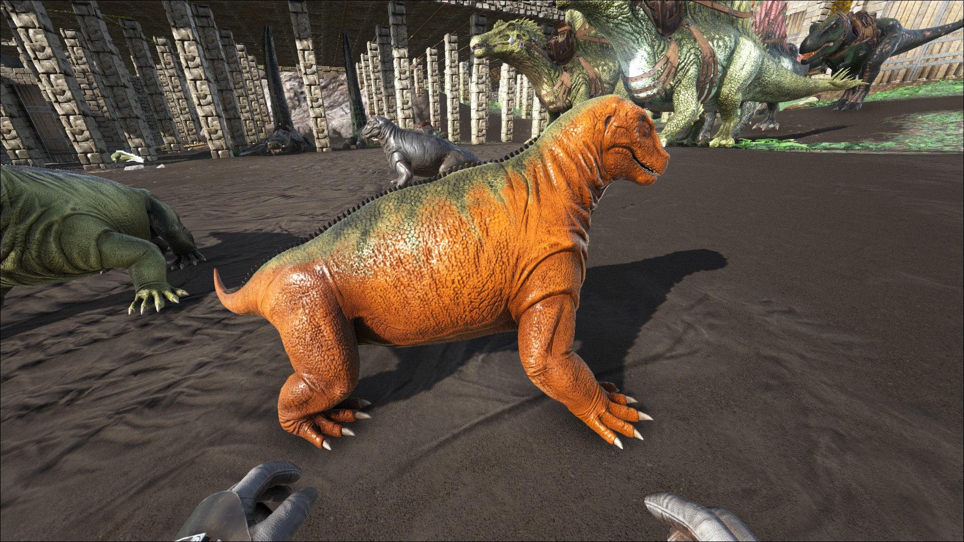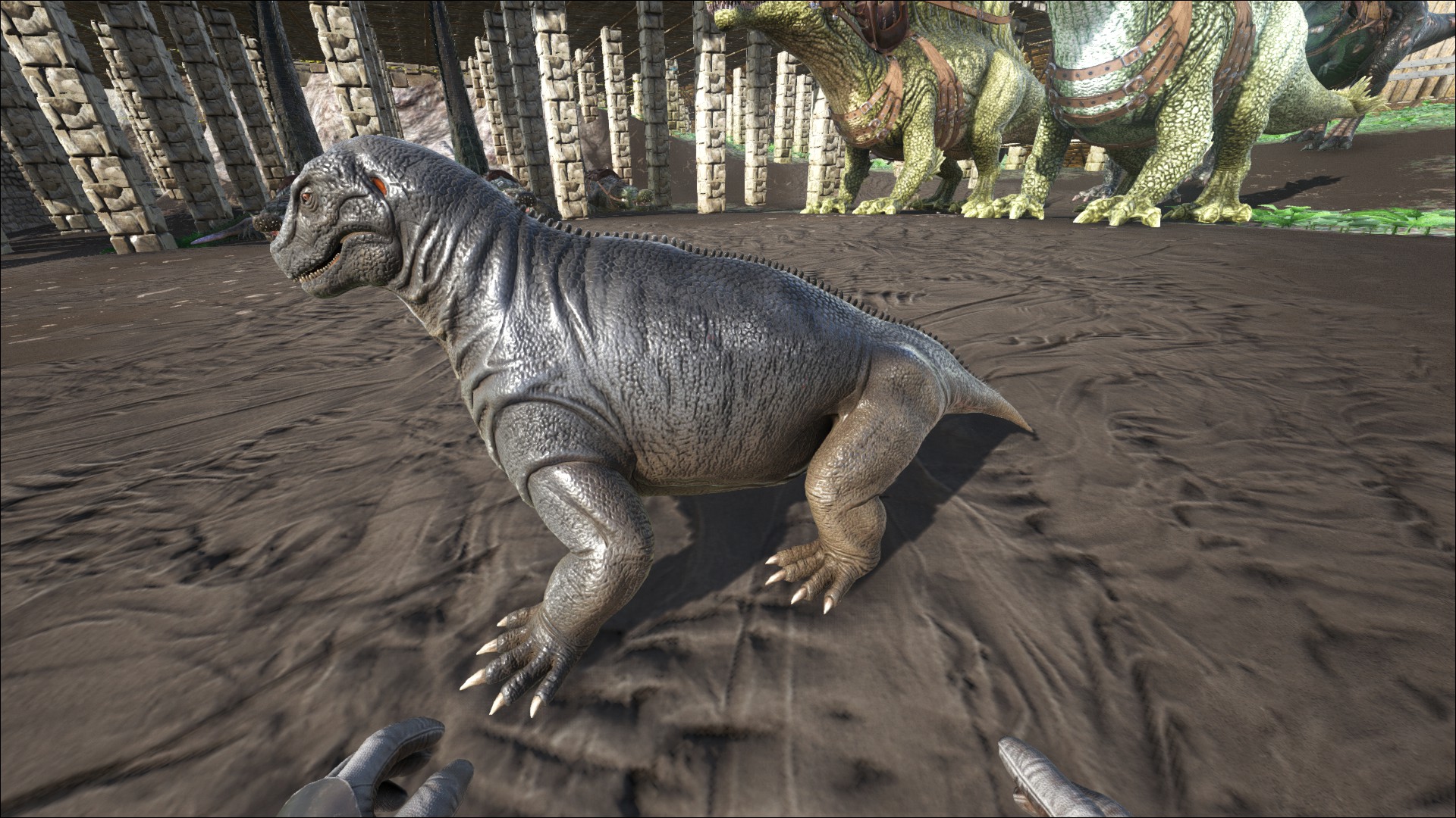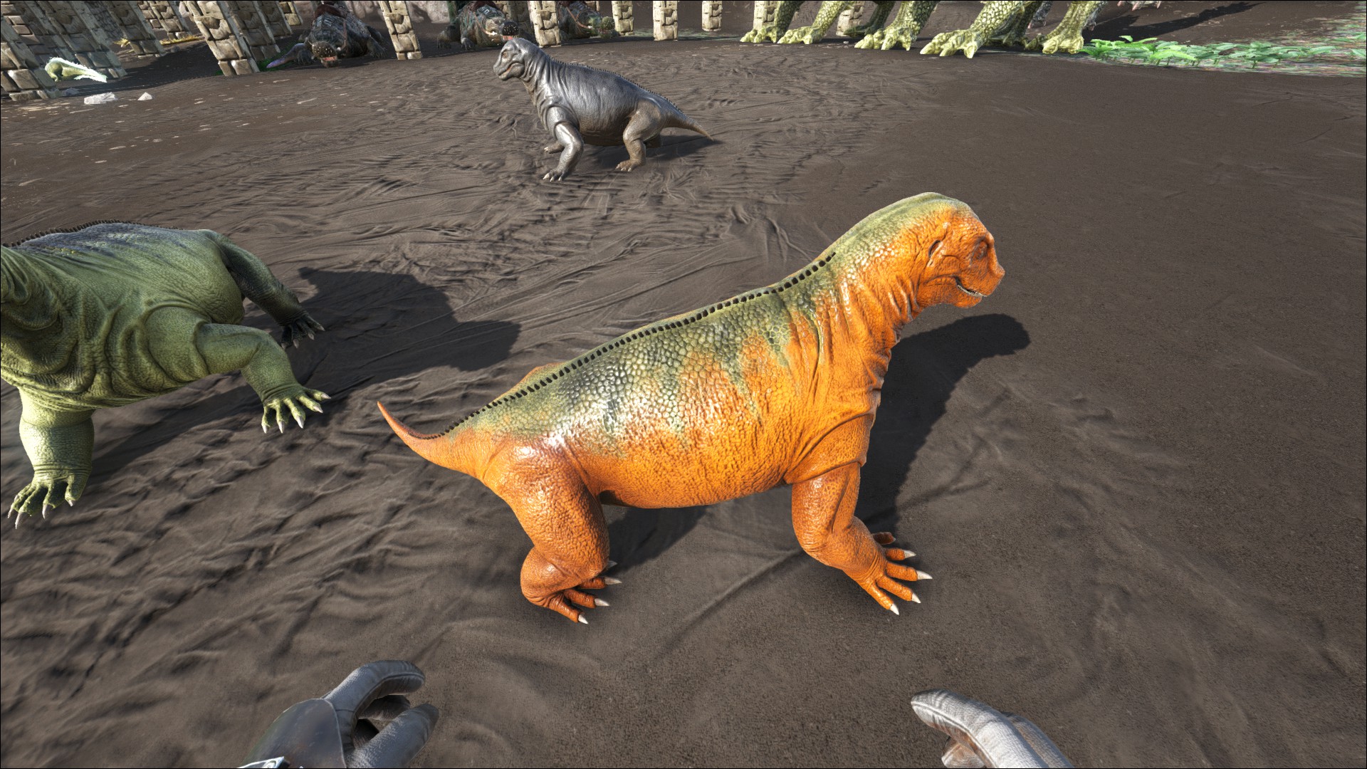 Ebenso ist es möglich den Moschops mit einem Kaprosuchus oder Argentavis zu fangen und in ein Zähmgehege zu verbringen.