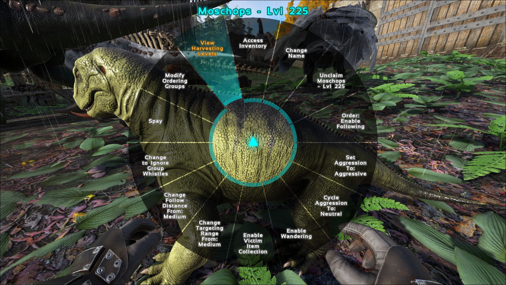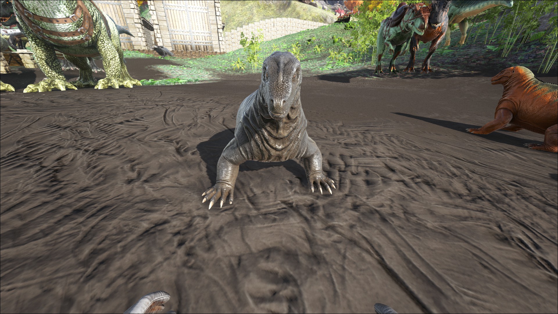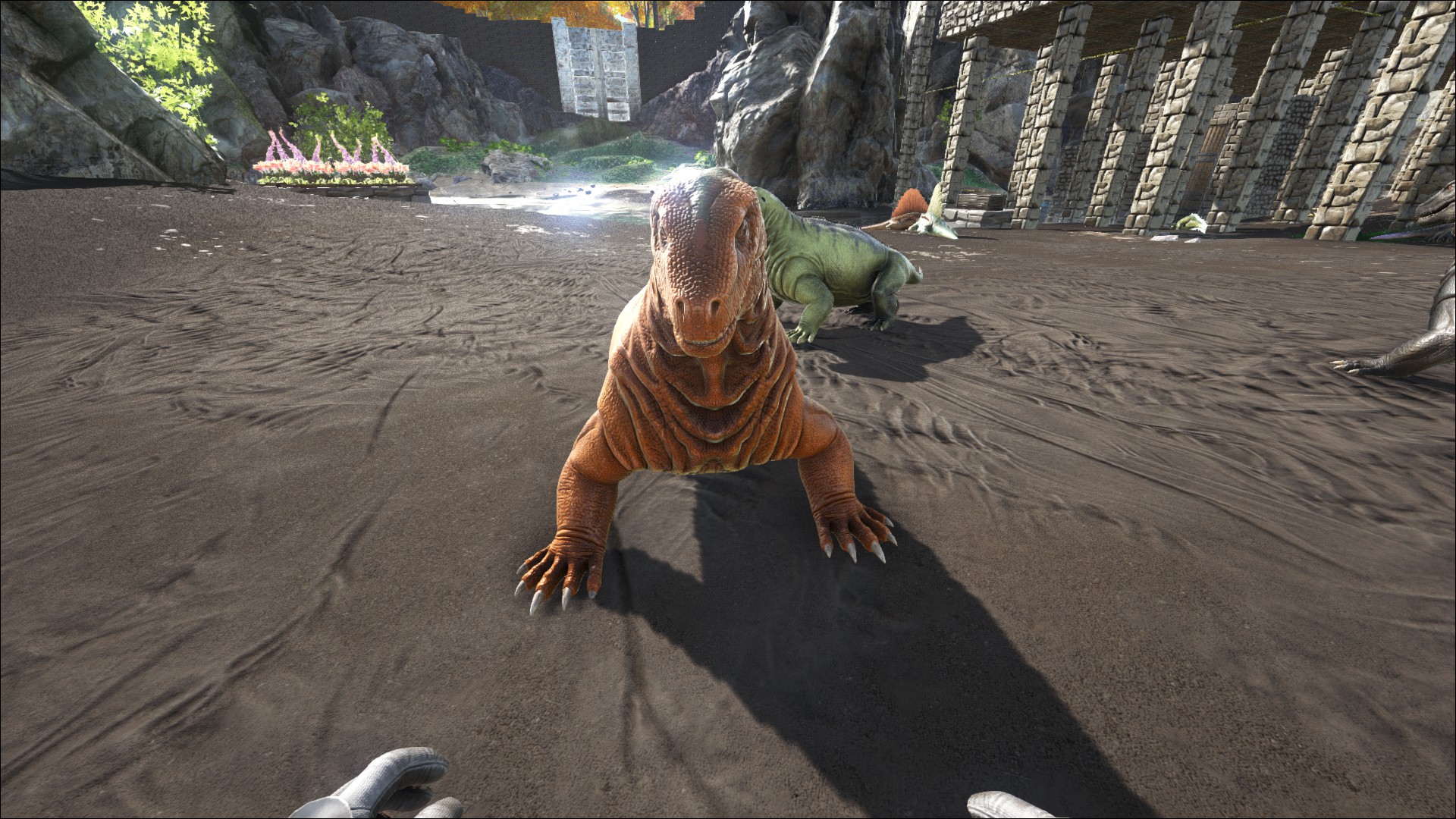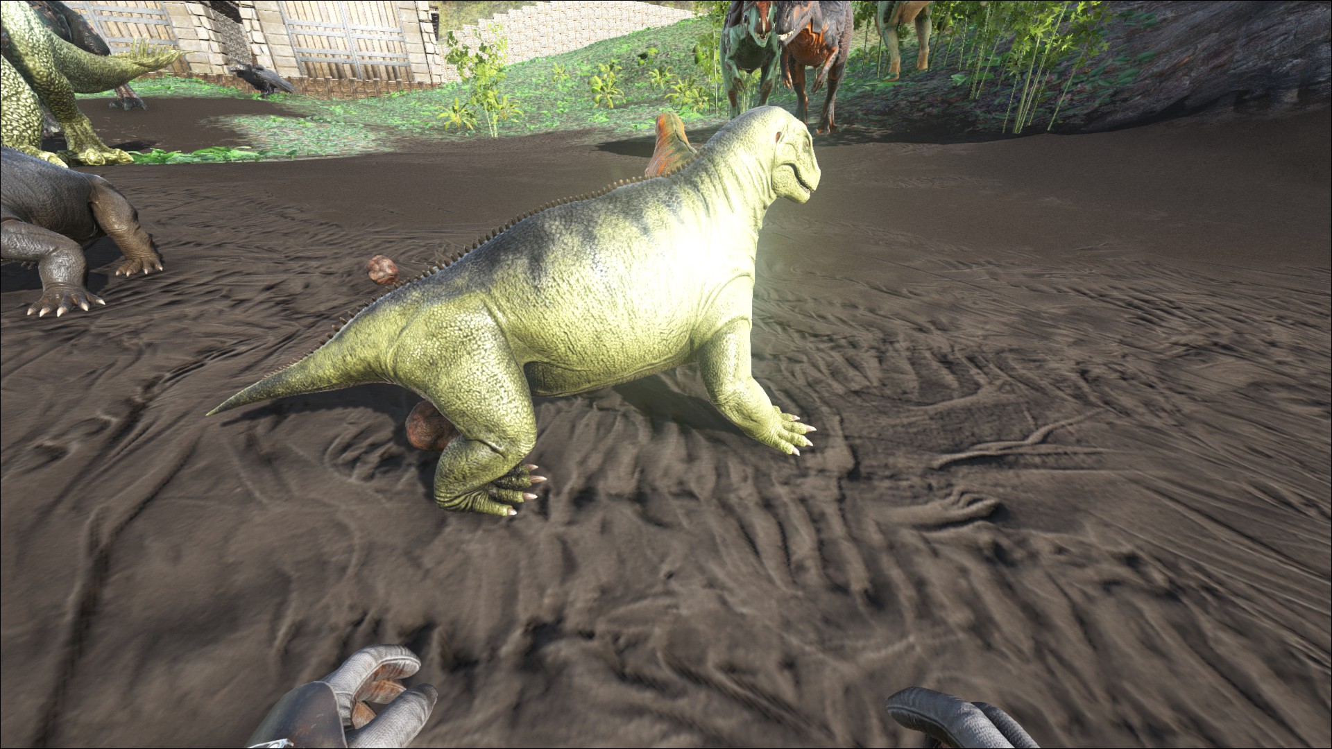 Ebenso ist es möglich den Moschops mit einem Kaprosuchus oder Argentavis zu fangen und in ein Zähmgehege zu verbringen.