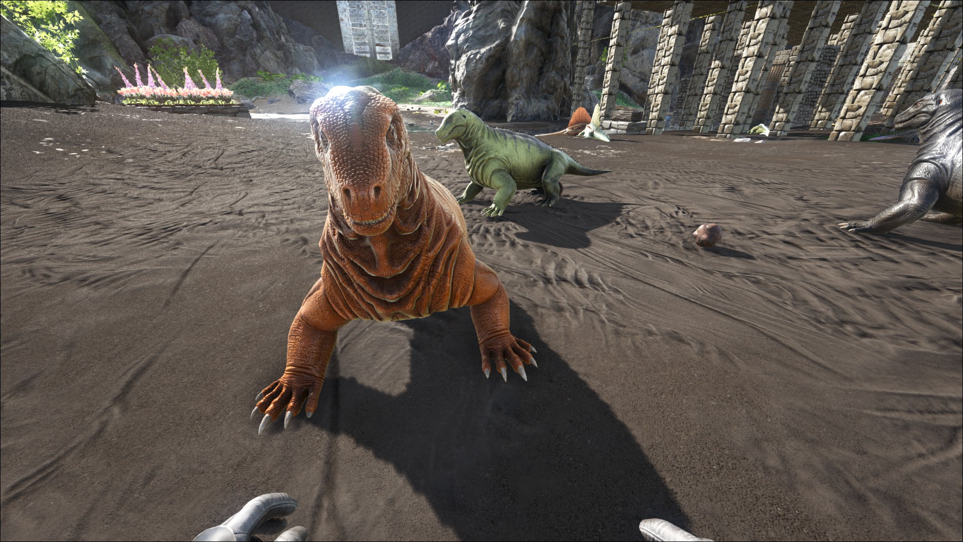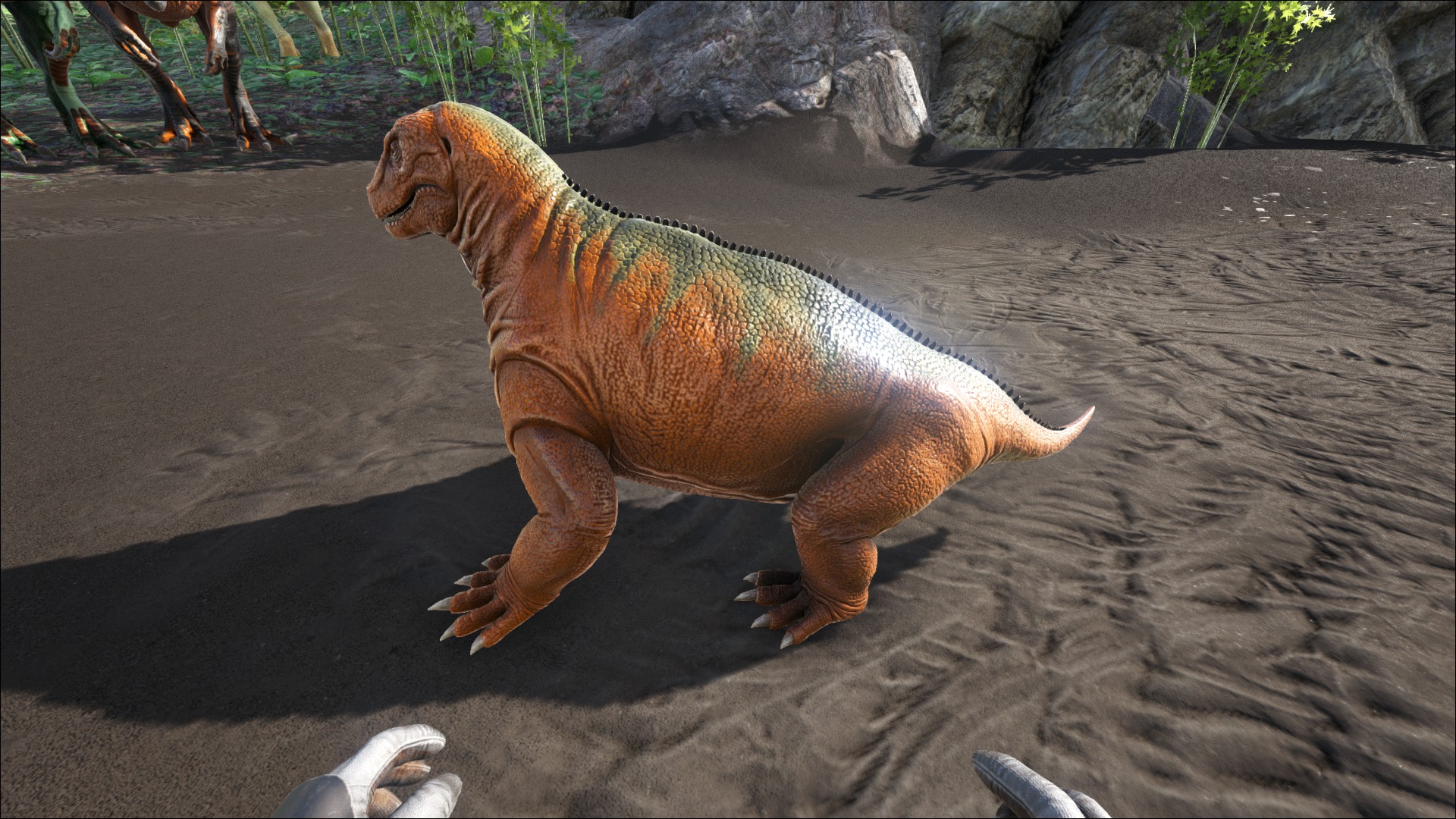 Ebenso ist es möglich den Moschops mit einem Kaprosuchus oder Argentavis zu fangen und in ein Zähmgehege zu verbringen.