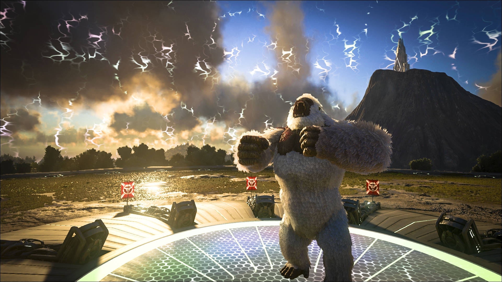 Der Megapithecus hat sein Lager, weit oben im hohen und eisigen Norden, der Insel aufgeschlagen. Auch ist nicht viel bekannt über diese mysteriöse Kreatur. In "Survivor of the Fittest" kann der Megaphitecus neben der Brutmutter und dem Dachen beritten werden. Einer seiner Angriffe ermöglicht es dem Megaphitecus Steine aufzuheben um diese anschließend zu werfen, dies richtet erheblichen Schaden bei einfachen Strukturen und Dinosaurier Gruppen an. Der Megaphitecus sollte nicht mit dem Mesopithecus verwechselt werden, dennoch passiert dies dem einen oder anderen neuen Abenteurer. -