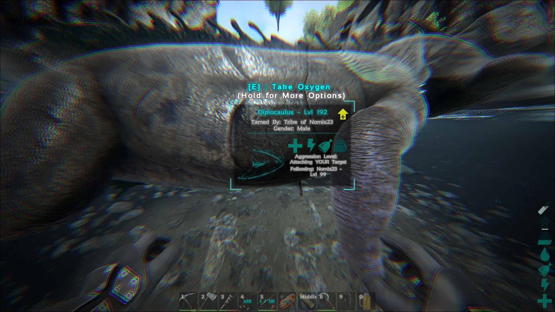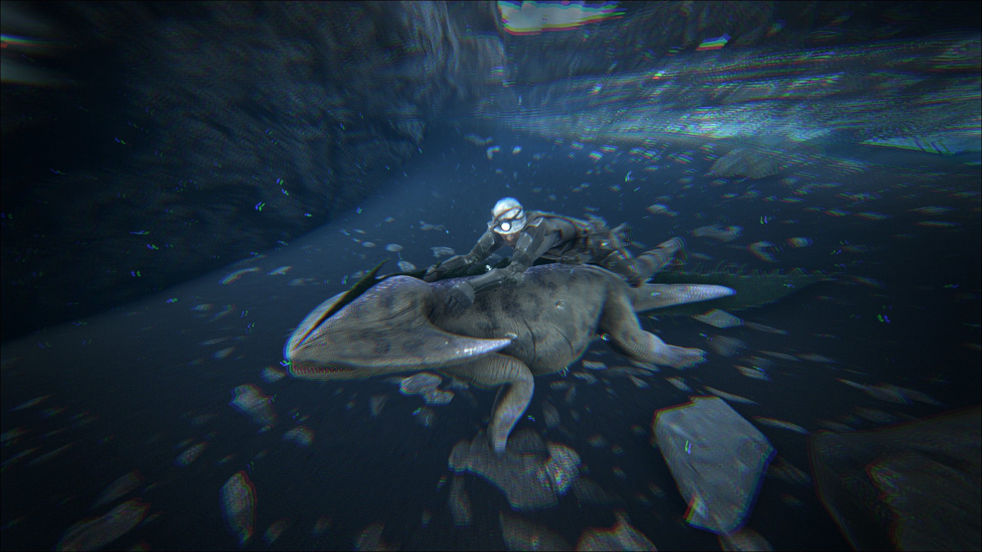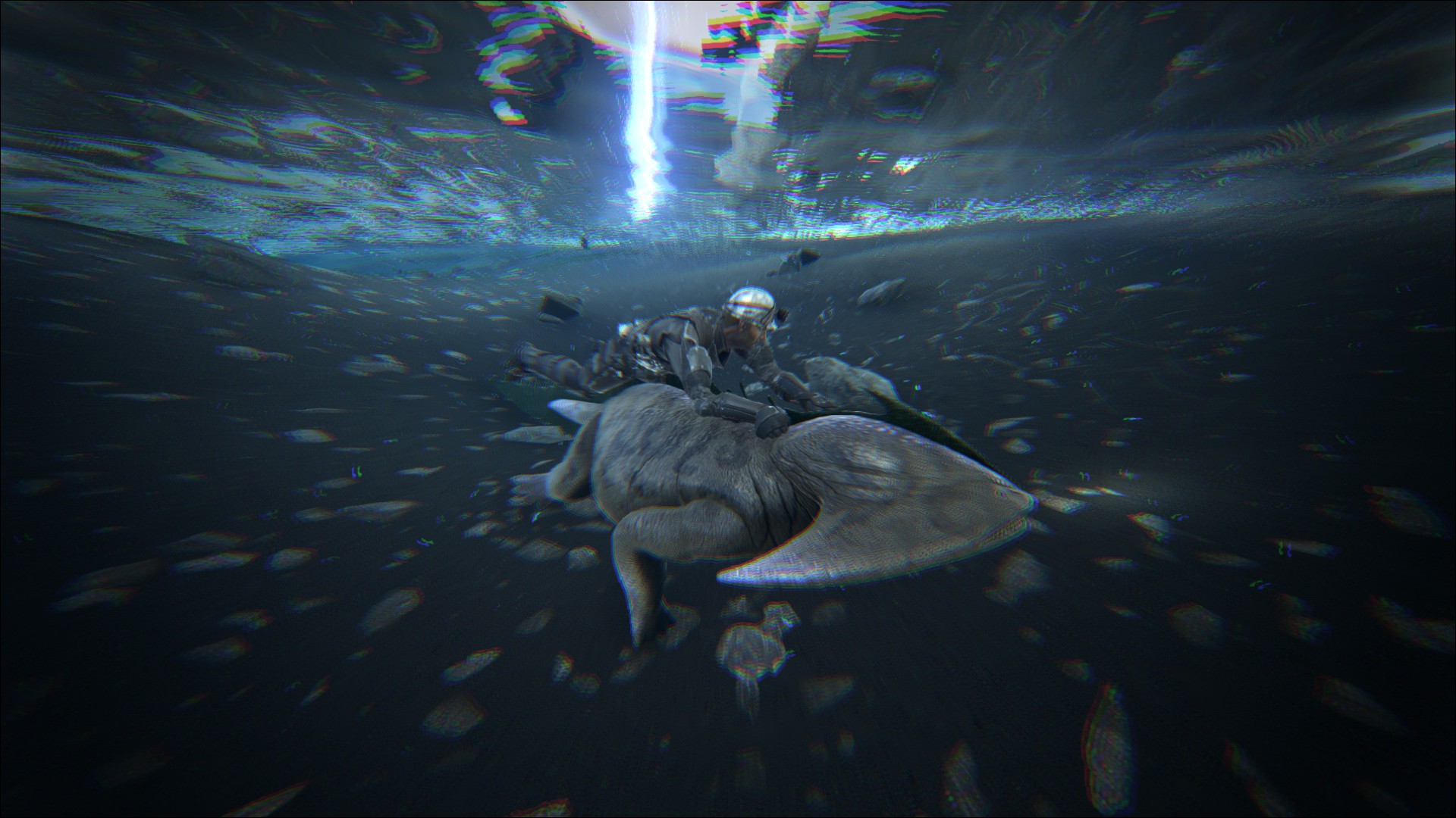 Einfach mit dem Tier zusammen ins Wasser gehen, am besten so, das bei (Charakter & Dino) schwimmen müssen, durch das kurze drücken der Taste "E" konsumiert der Charakter Sauerstoff,