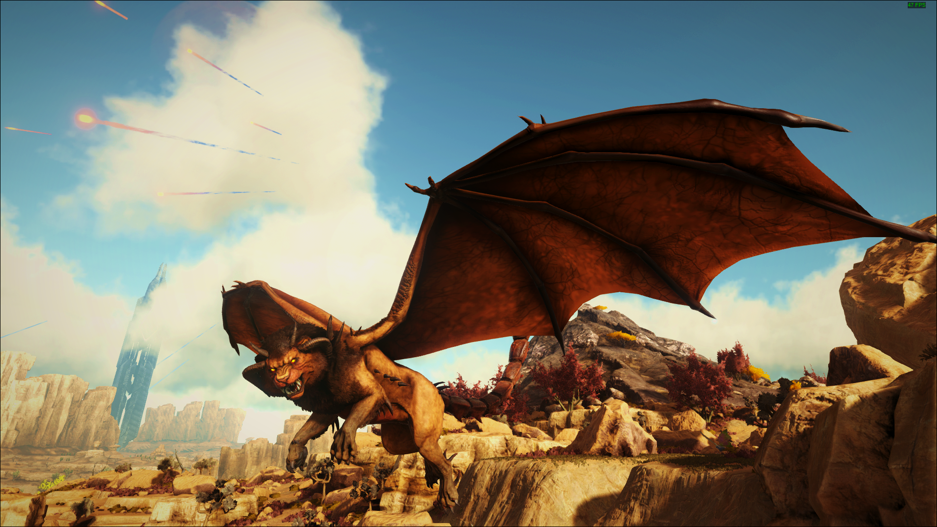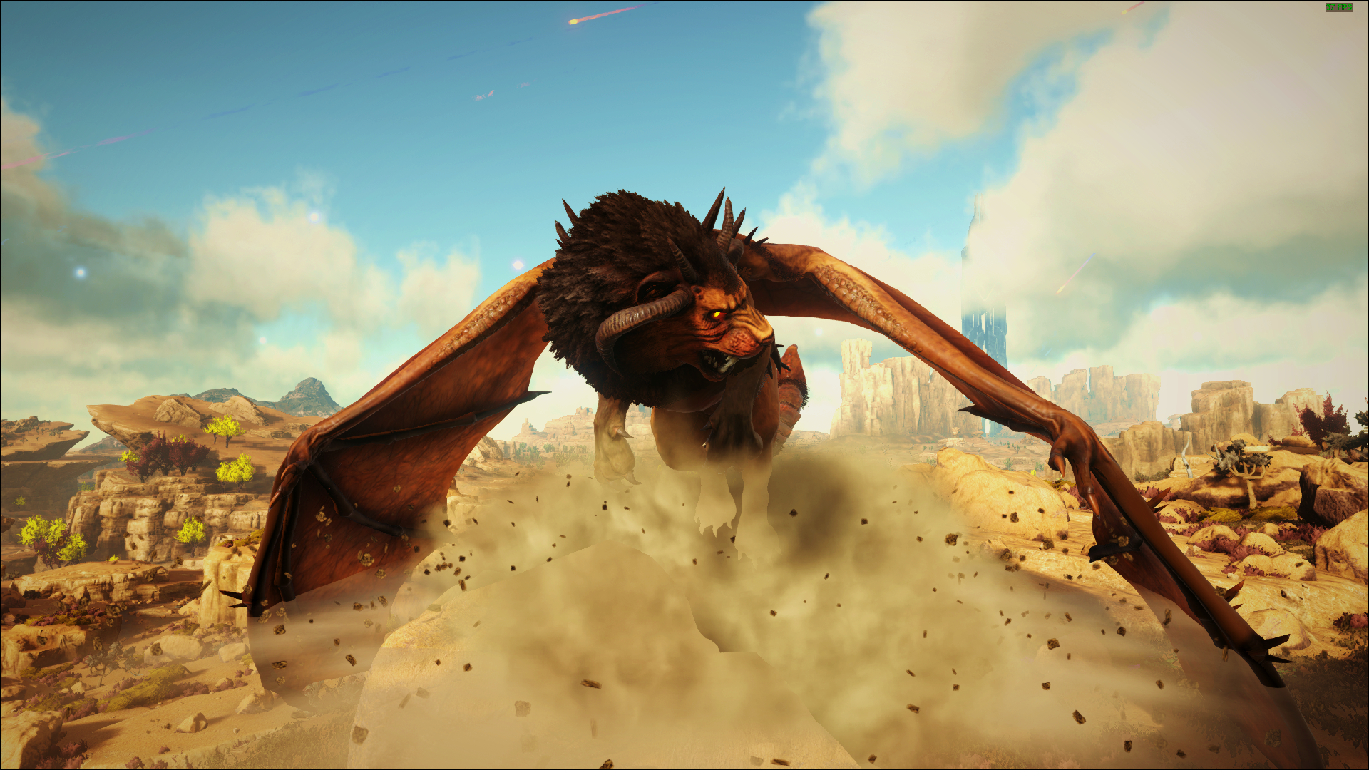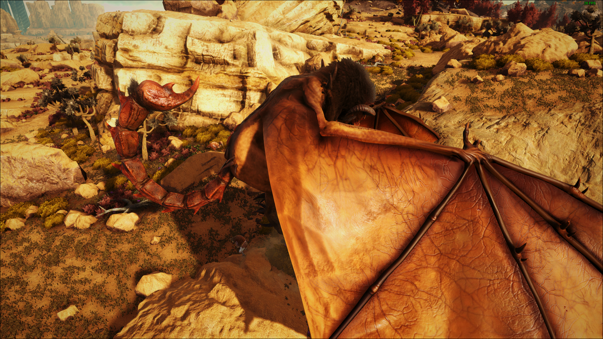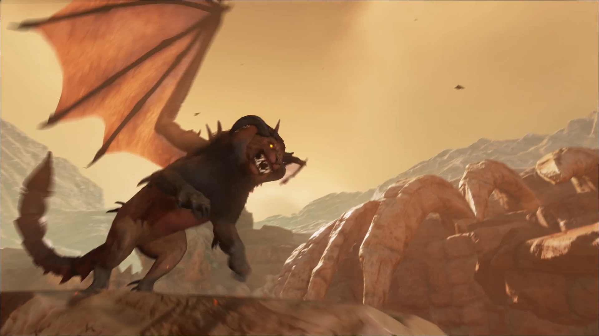 Der Manicore ist eigentlich ein Wesen aus der persischen Mythologie und „Mantikor“ bedeutet so viel wie Menschenfresser. Er ist ein Mischwesen mit dem Kopf und Körper eines Löwen, den Flügeln eines Drachen und dem Schwanz eines Skorpiones. Mit diesem Schwanz ist es ihm möglich giftige Stacheln wie Pfeile abzufeuern, sollten diese Pfeile Euch erwischen, werdet Ihr sehr hohe Betäubungswerte erhalten, vergesst also nicht genügend Stimulans und Wasser mitzunehmen. Außerdem kann er Stein Golem´s und Deathworm´s beschwören welche Euch das Überleben in seiner Arena nicht einfach machen werden. Eine gute Methode scheint es zu sein, ihn sofort mit 6 – 8 wirklich sehr gut skalierten (Health, Melee Damage) Wyvern anzugreifen.