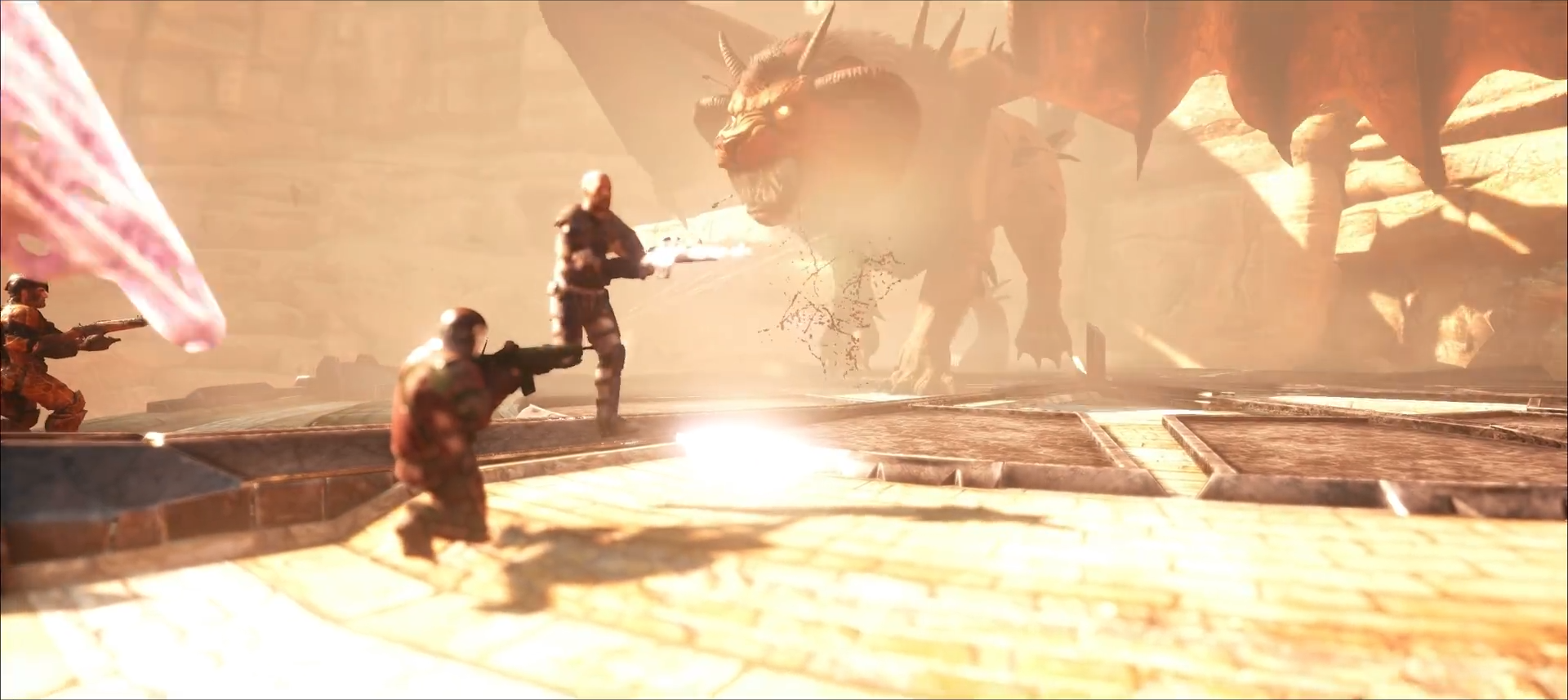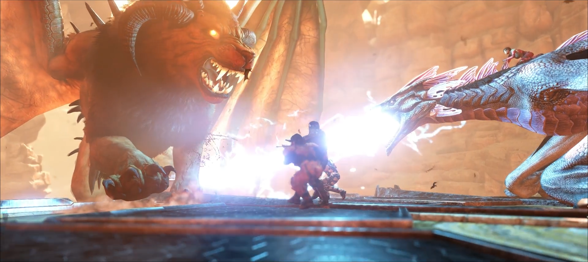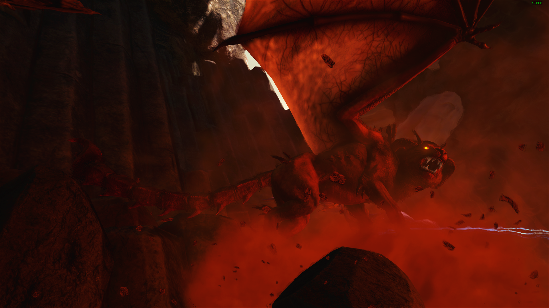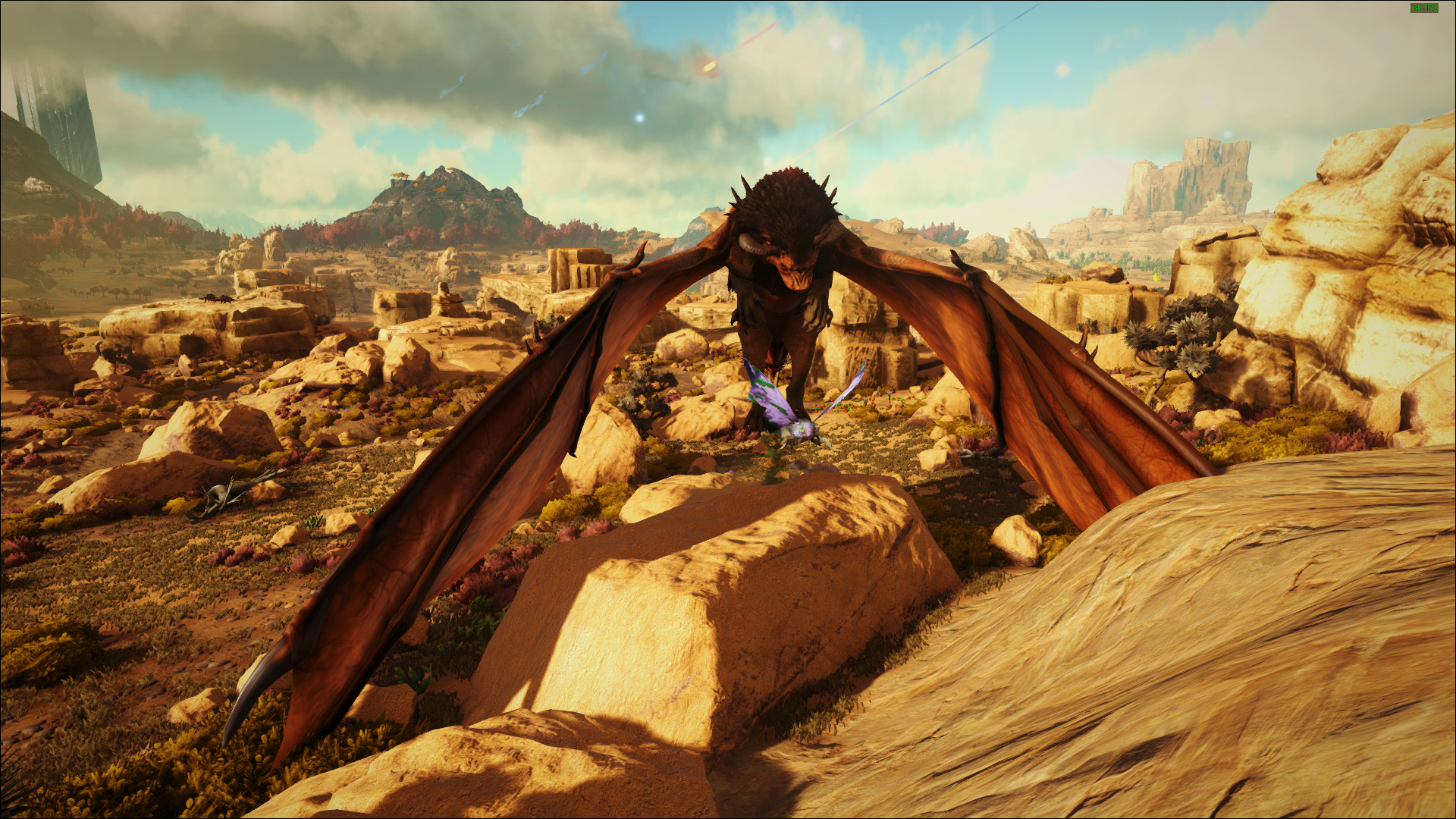 Der Manicore ist eigentlich ein Wesen aus der persischen Mythologie und „Mantikor“ bedeutet so viel wie Menschenfresser. Er ist ein Mischwesen mit dem Kopf und Körper eines Löwen, den Flügeln eines Drachen und dem Schwanz eines Skorpiones. Mit diesem Schwanz ist es ihm möglich giftige Stacheln wie Pfeile abzufeuern, sollten diese Pfeile Euch erwischen, werdet Ihr sehr hohe Betäubungswerte erhalten, vergesst also nicht genügend Stimulans und Wasser mitzunehmen. Außerdem kann er Stein Golem´s und Deathworm´s beschwören welche Euch das Überleben in seiner Arena nicht einfach machen werden. Eine gute Methode scheint es zu sein, ihn sofort mit 6 – 8 wirklich sehr gut skalierten (Health, Melee Damage) Wyvern anzugreifen.