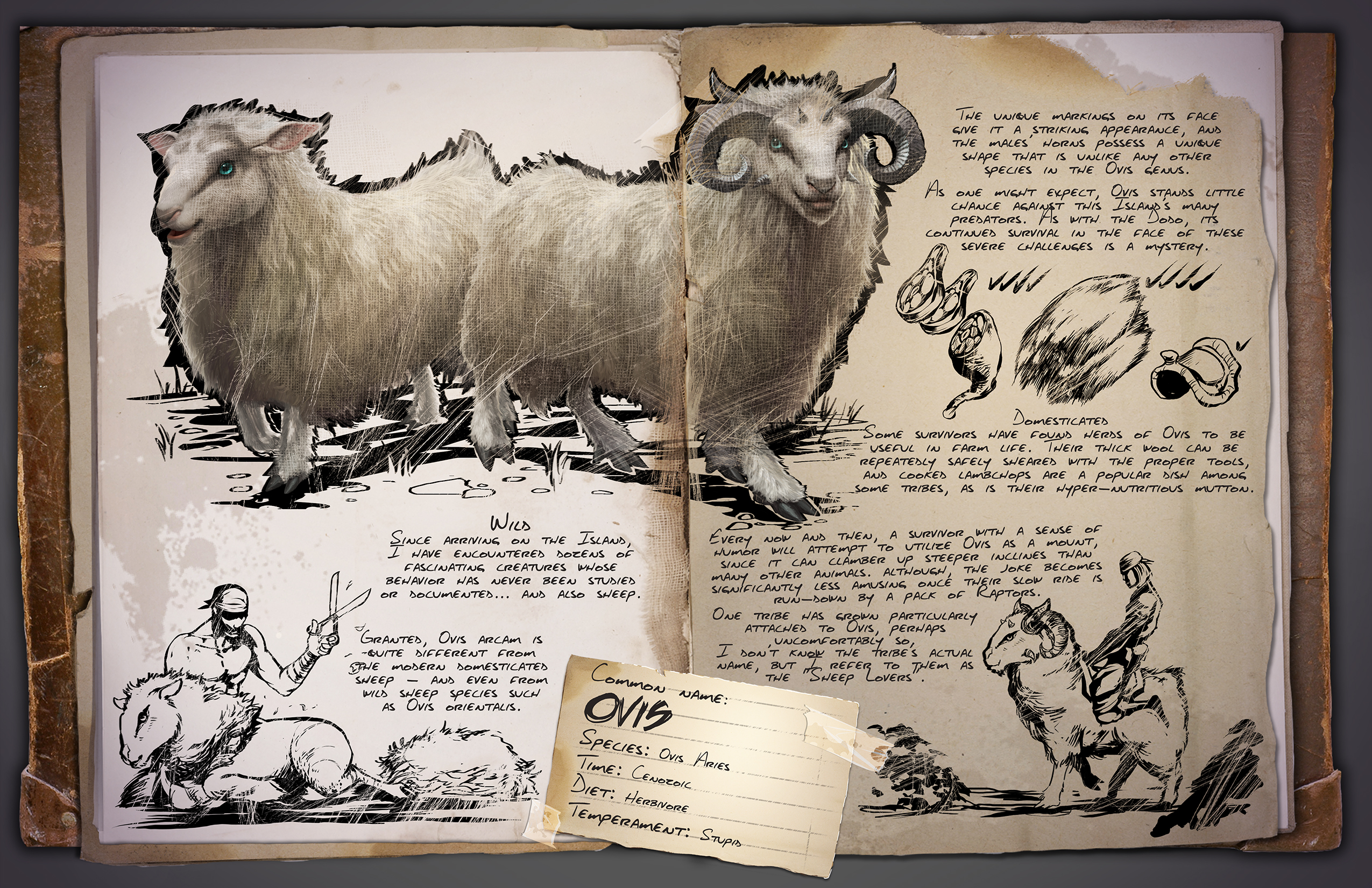 Viele Überlebende betrachten es als nützlich, sich Schafherden für ihren Bauernhof zu halten. Die dicke Schafwolle kann mittels geeigneter Werkzeuge immer wieder gewonnen werden, außerdem liefert Ovis Hammelfleisch, dies wird in einigen Stämmen zu leckeren und super nahrhaften Lammkotletts weiterverarbeitet. Einige Überlebende haben sehr viel Spaß daran Ovis als Reittier einzusetzen, da dieser besonders gut steile Hänge erklimmen kann. Weitaus weniger amüsant wird es sollte dieser langsame Ritt von einem Rudel Raptoren überrascht werden. Ein Stamm scheint den Ovis besonders zu mögen, aber ich kenne den Namen des Stammes nicht mehr, deswegen heißen sie bei mir die „Schafliebhaber“. -