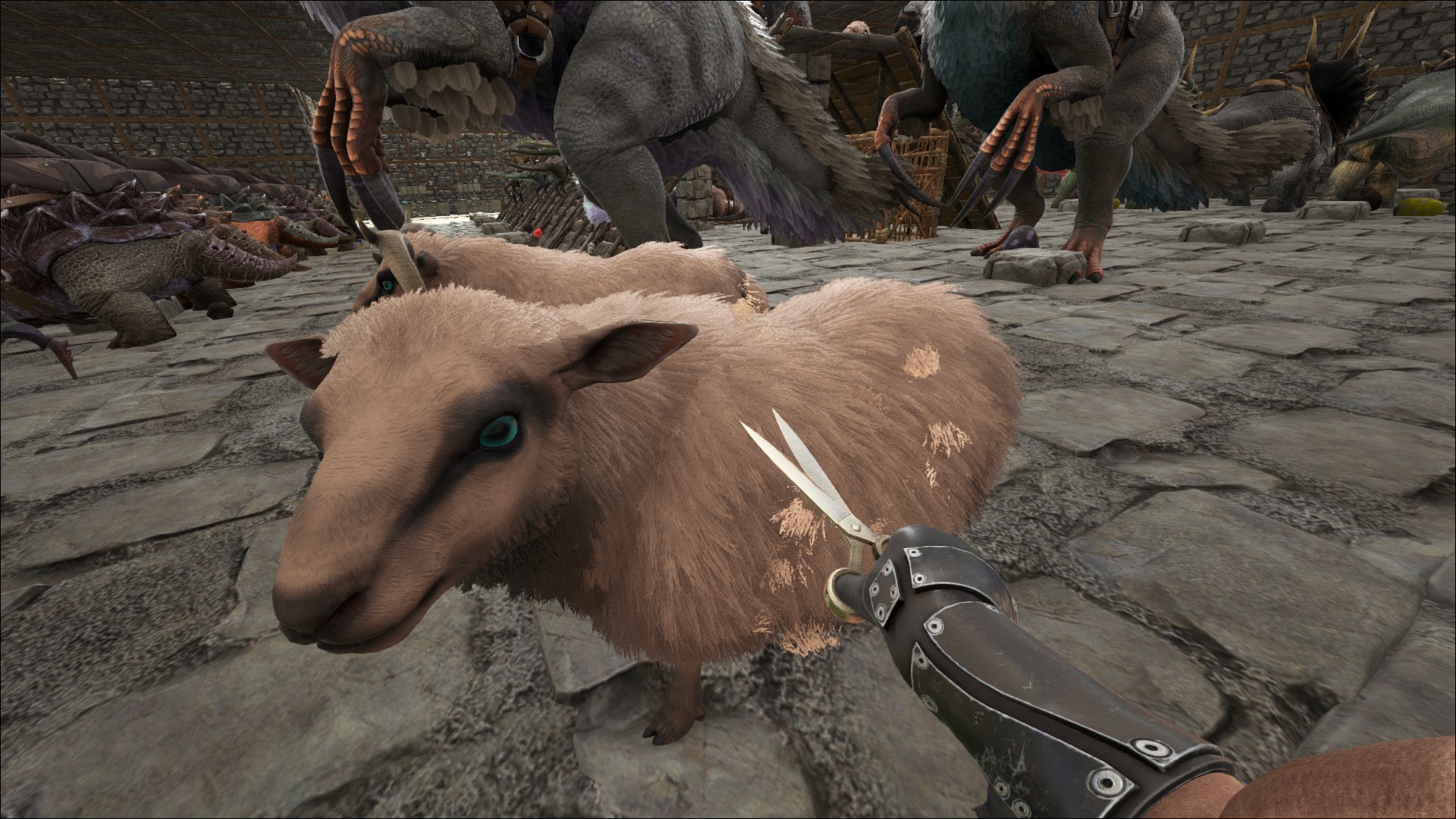 Wolle erhält man durch das scheren von einem Schaf (wild oder gezähmt spielt keine Rolle, beide geben Wolle ab) mittels einer Schere.