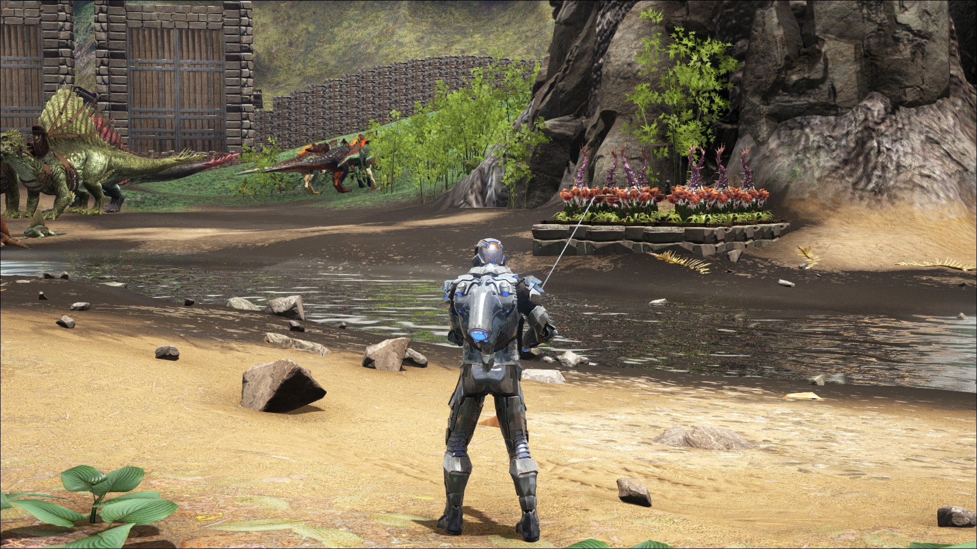Mit den Tek Handschuhen kann man durch drücken der rechten Maustaste einen starken Schlag nach vorne machen welche auf einem Ziel Schaden verursacht. Dabei kann man Ressourcen ernten und es wird eine geringe Menge an Element verbraucht.