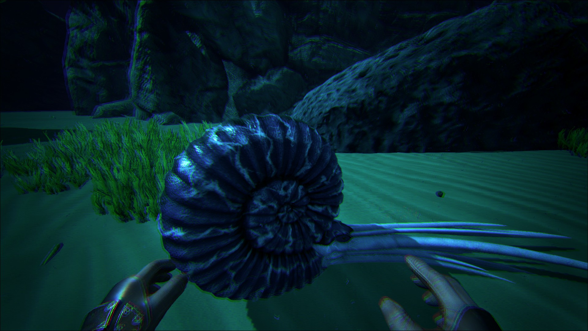Der Amonitina besiedelt ebenfalls die tiefen Teile von Unterwasserhöhlen. Auch hier verhält es sich so, wird ein Amonitina angegriffen, zieht der Angreifer die Aufmerksamkeit der anderen Tiere auf sich, was das Schalenernten zu einer anspruchsvollen Aufgabe werden lässt, mal ganz davon abgesehen welche anderen Gefahren sonst noch an Ort und Stelle warten.