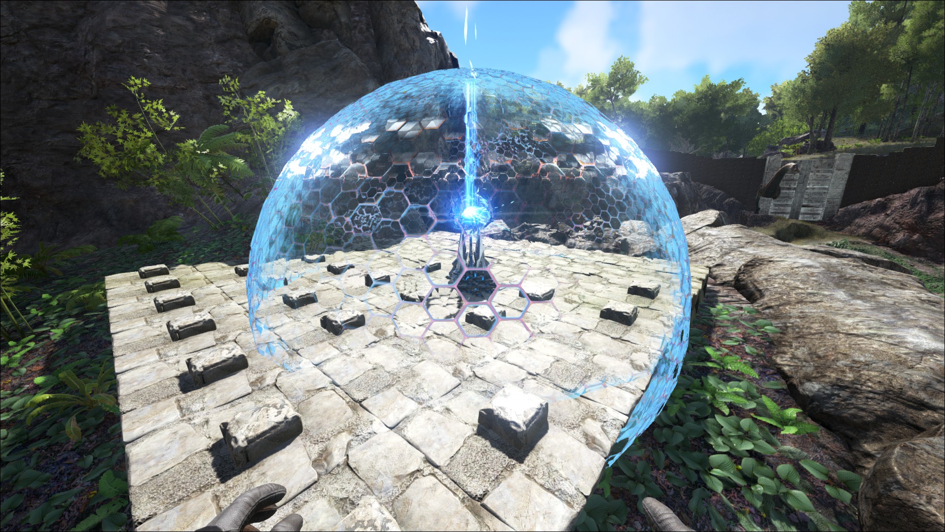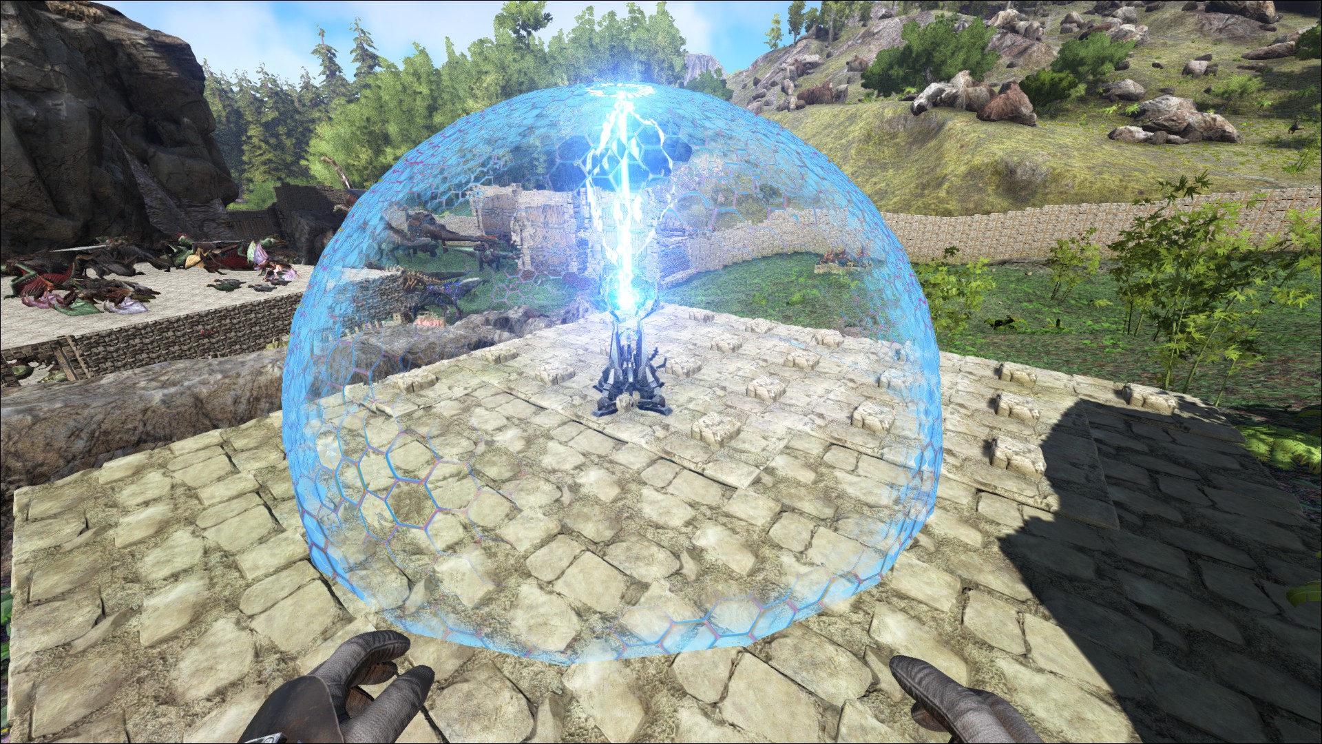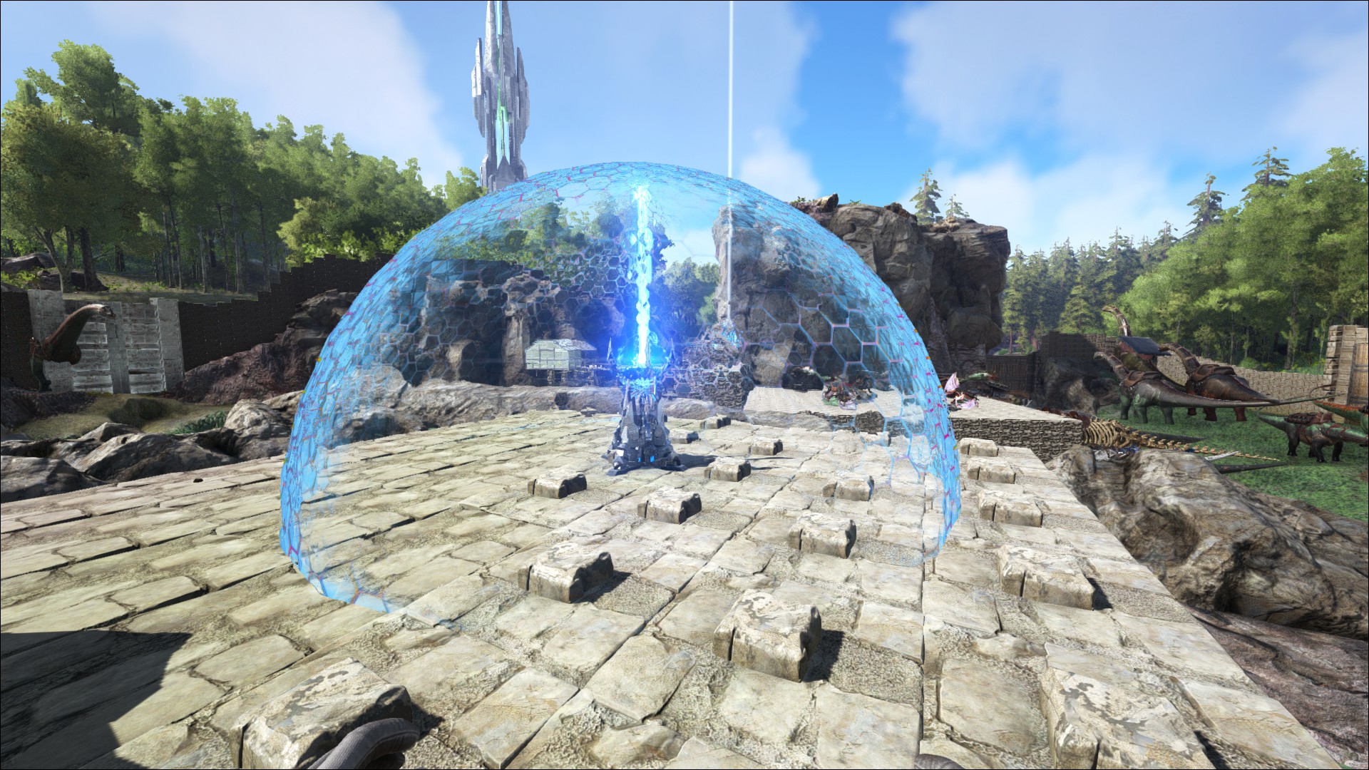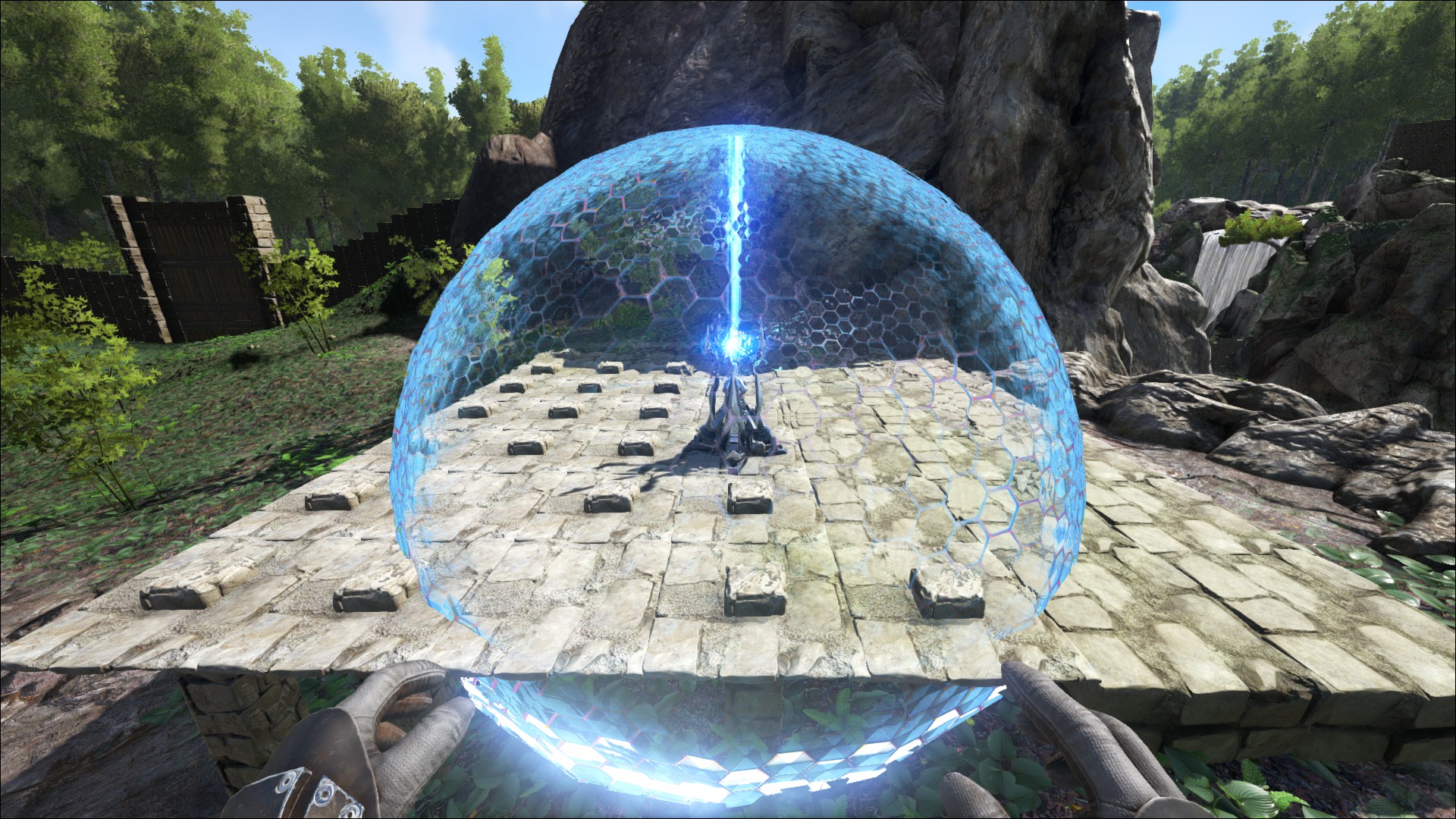 Ein Tek Schutzschild (Tek Forcefield), um die Basis vor übergriffen zu schützen.