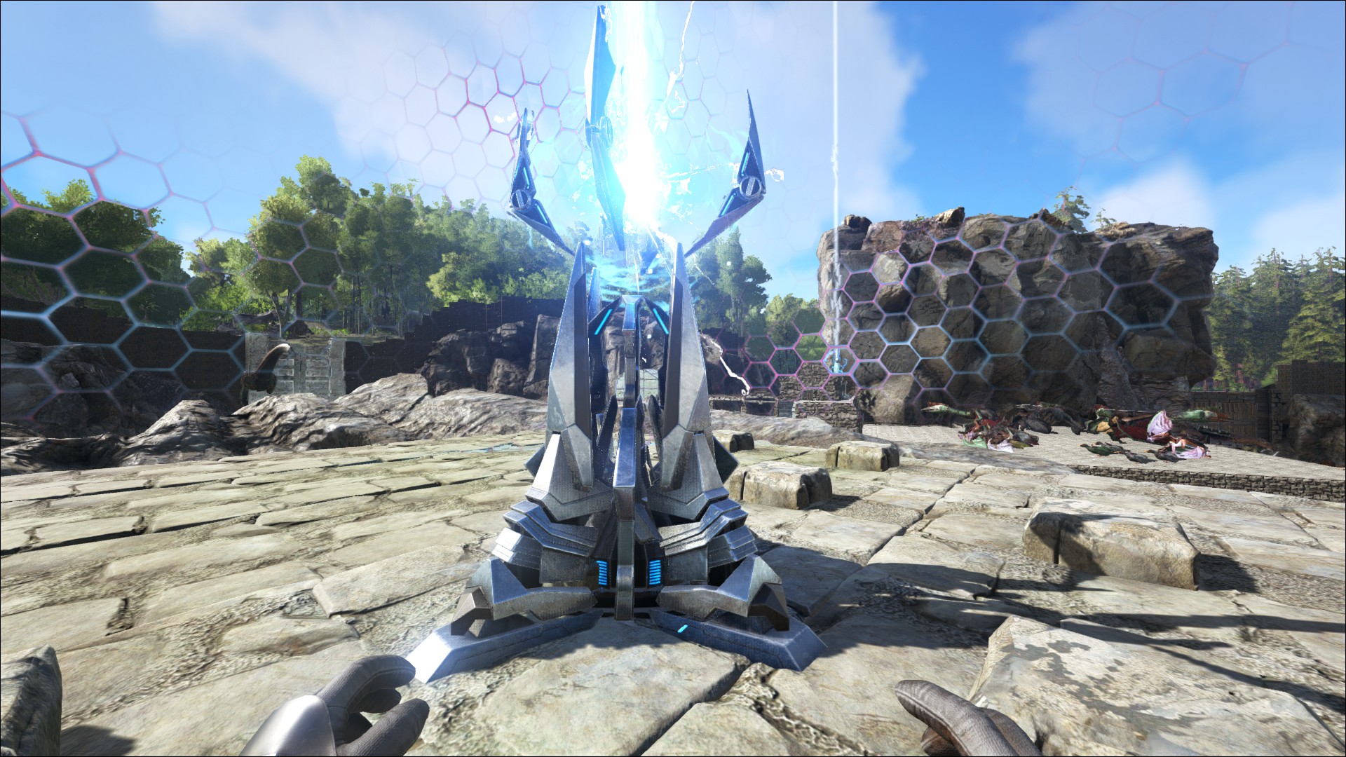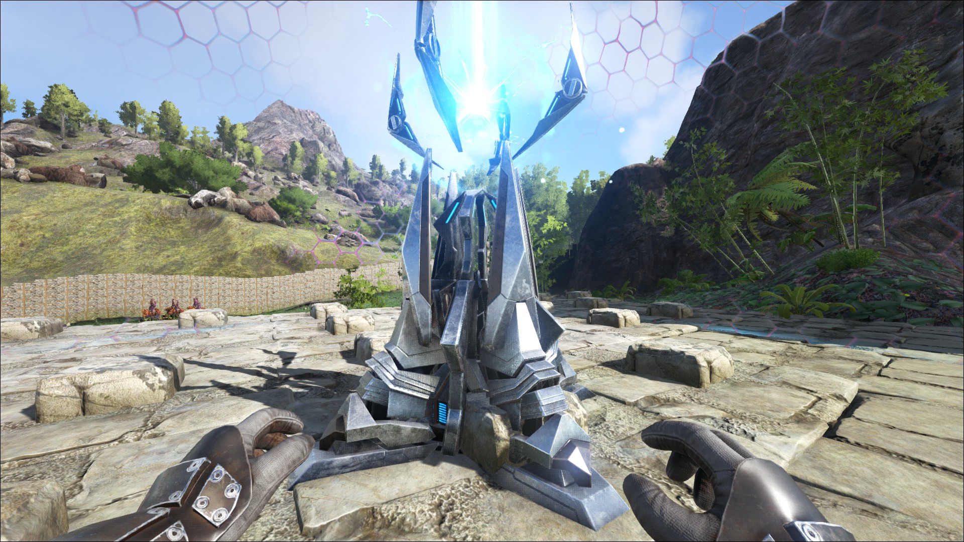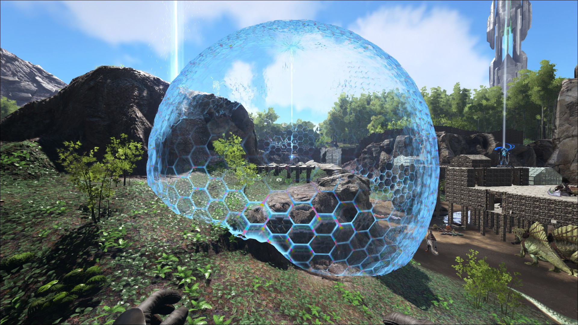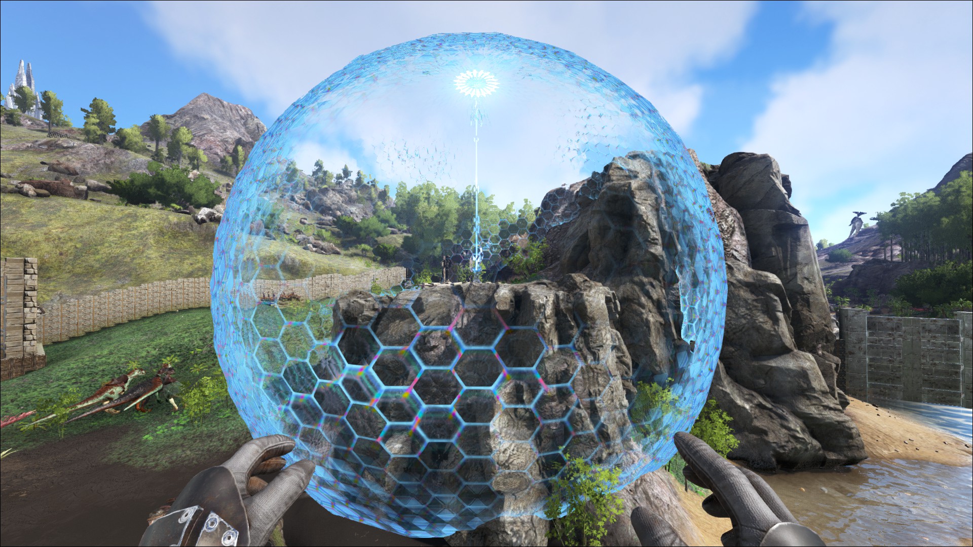 Ein Tek Schutzschild (Tek Forcefield), um die Basis vor übergriffen zu schützen.