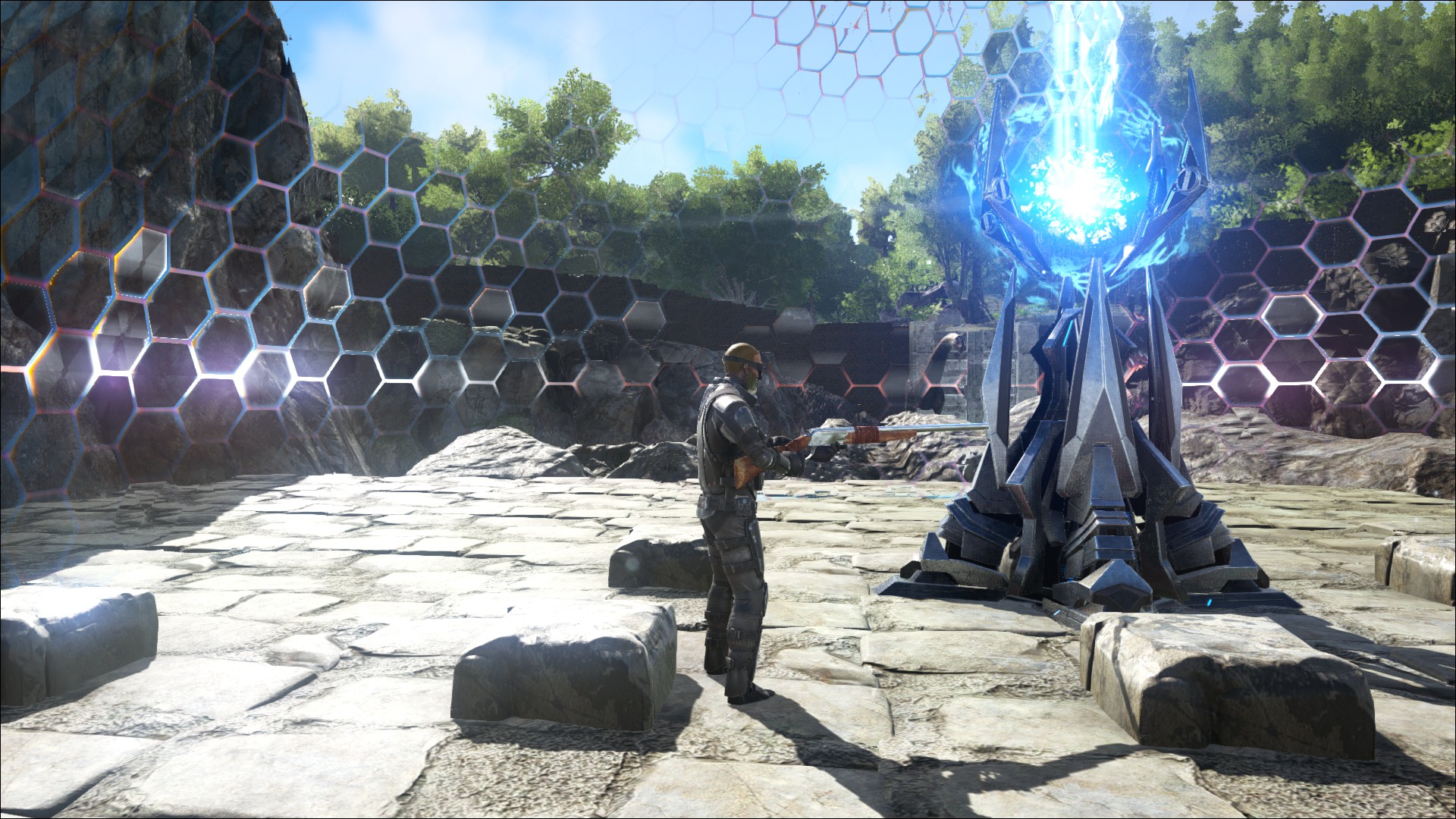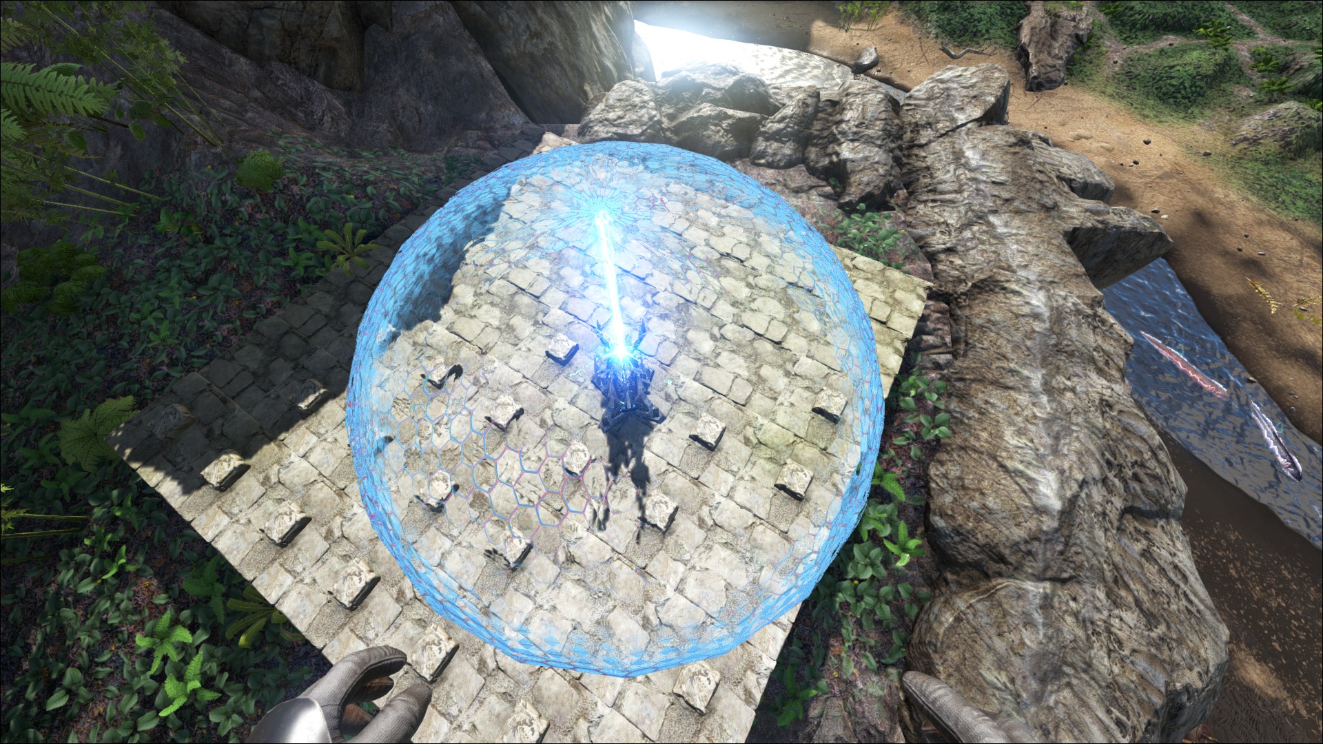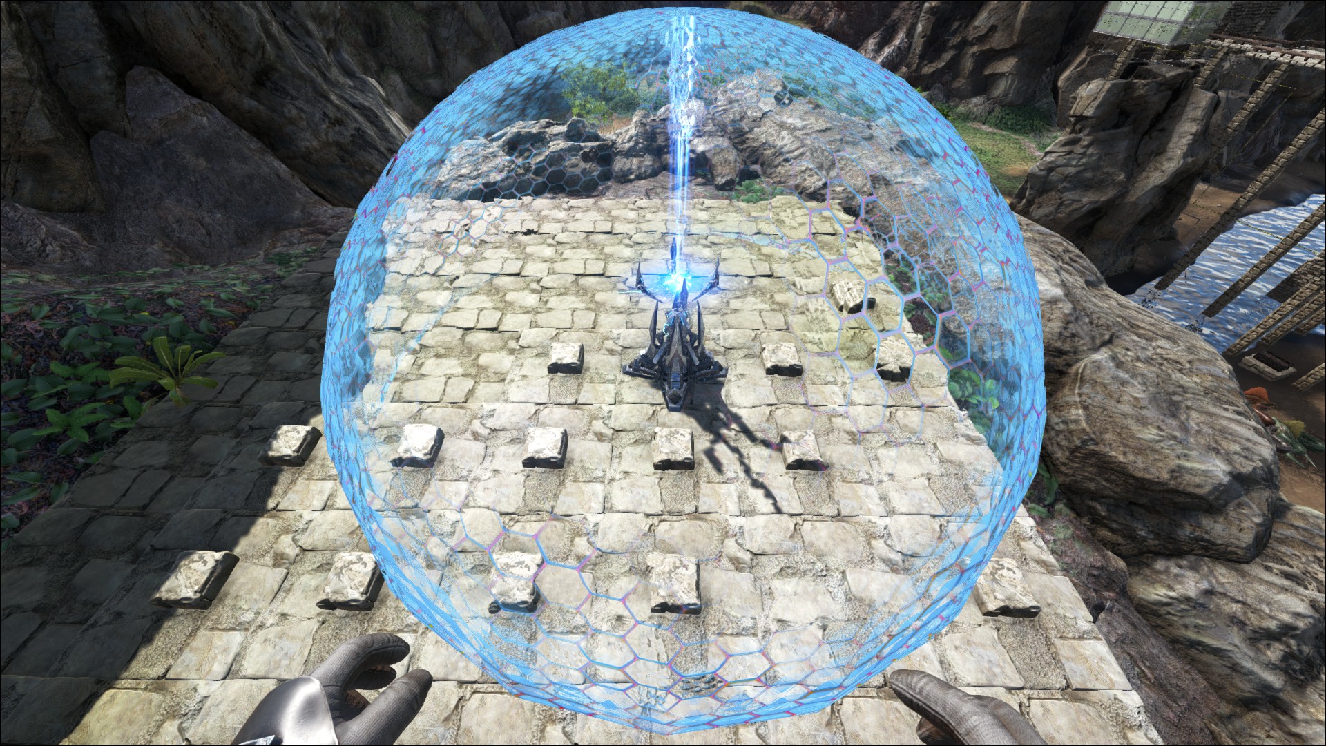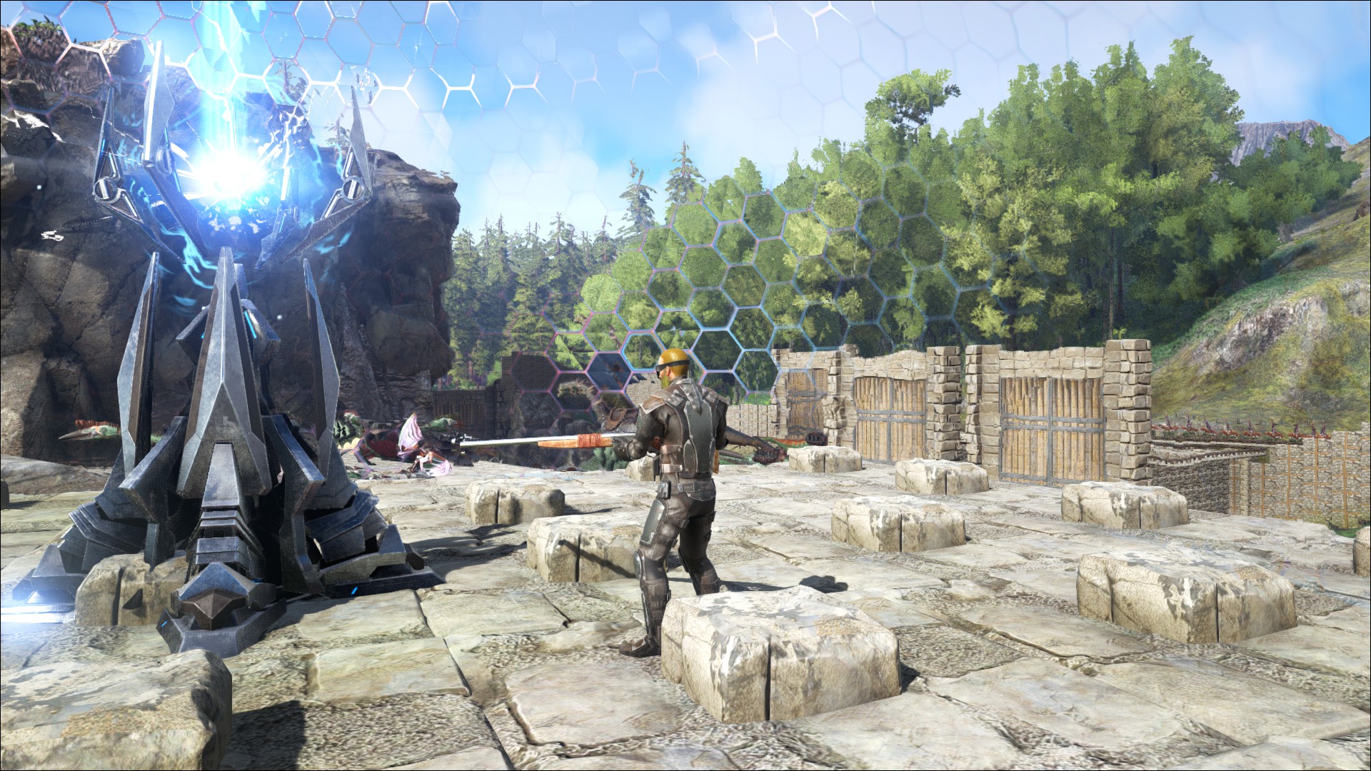 Ein Tek Schutzschild (Tek Forcefield), um die Basis vor übergriffen zu schützen.